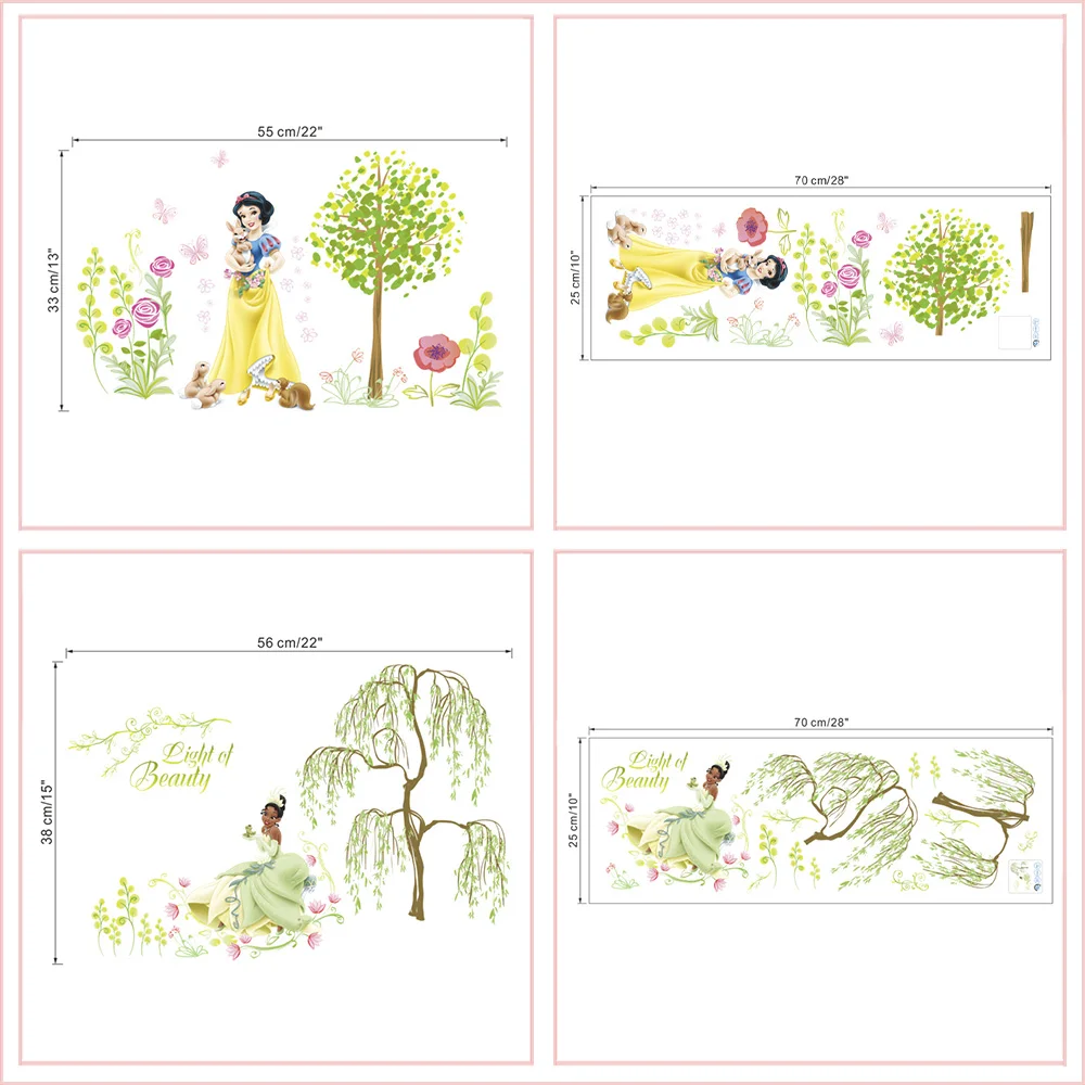 Мультфильм Disney Белоснежка Принцесса Тиана Цветы Сад Наклейки на стены для детской комнаты украшения Diy роспись искусство девушка наклейки на стены