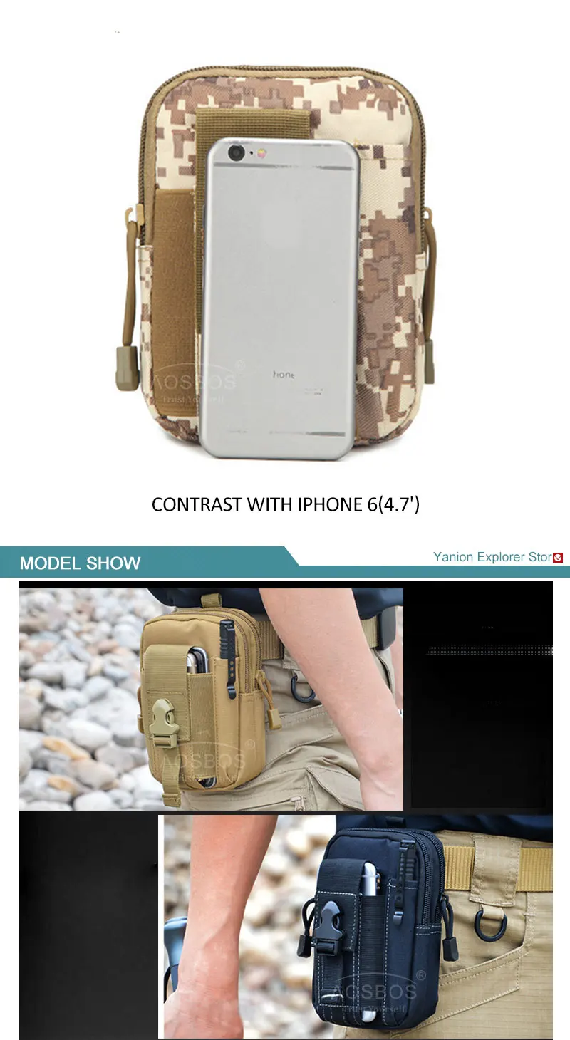 Поясная Сумка Aosbos Мужская, водонепроницаемая, Спортивная, многофункциональная, в стиле милитари