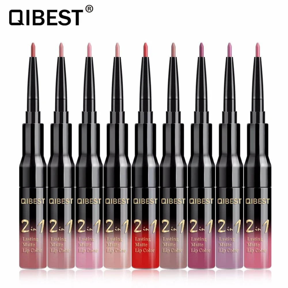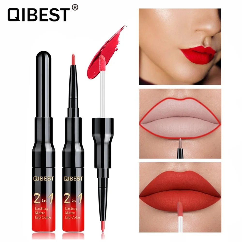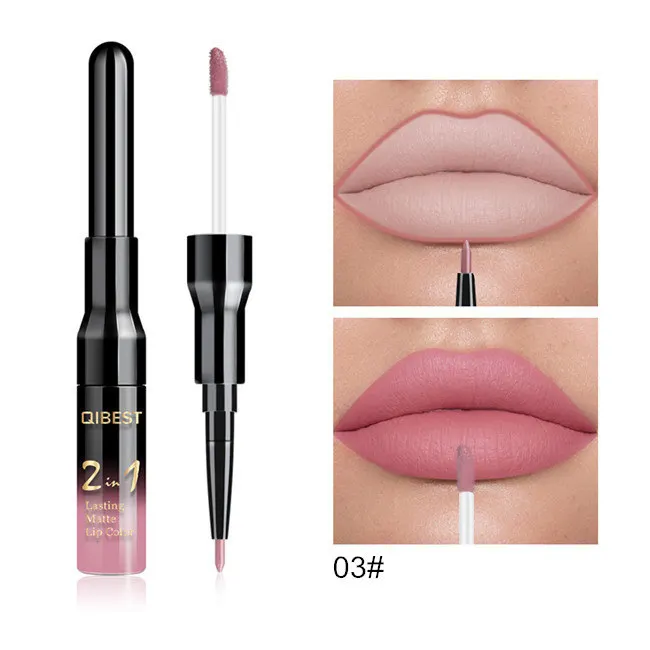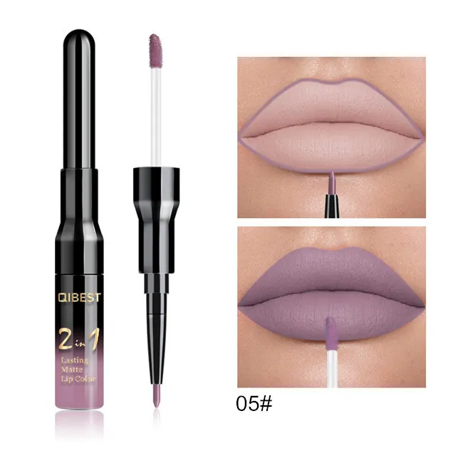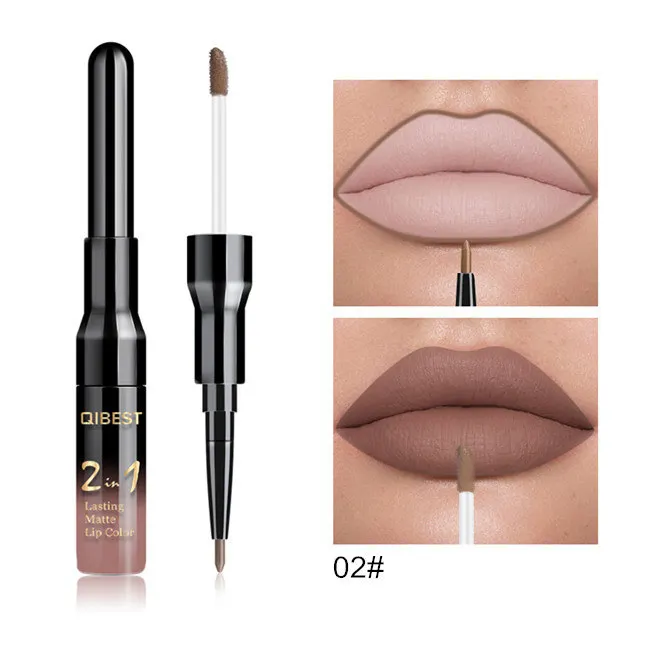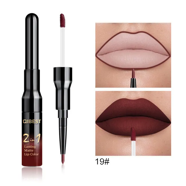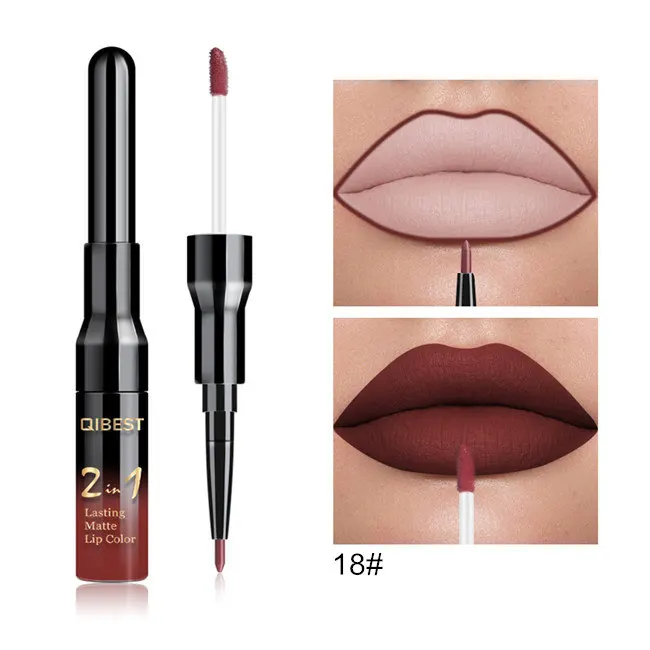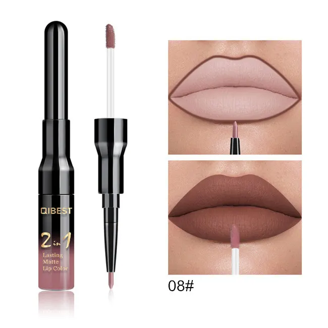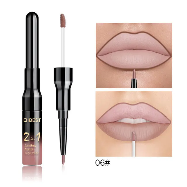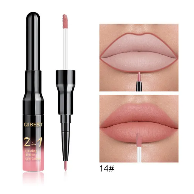 Двойной матовый блеск для губ Qibest ТИНТ, подводка, водостойкий нюдовый блеск для губ для макияжа, стойкая матовая фиолетовая красная коричневая жидкая помада