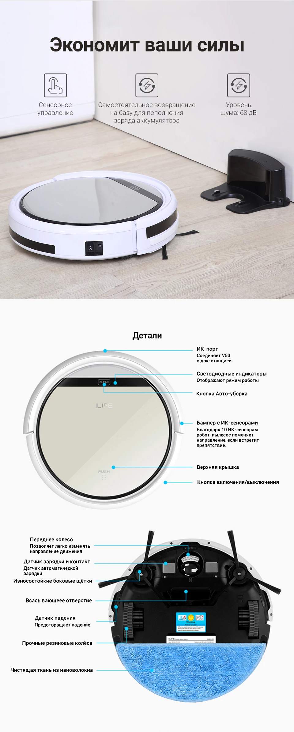 робот пылесос ILIFE V50 пылесос беспроводной для дома для сухой уборки MOLNIA