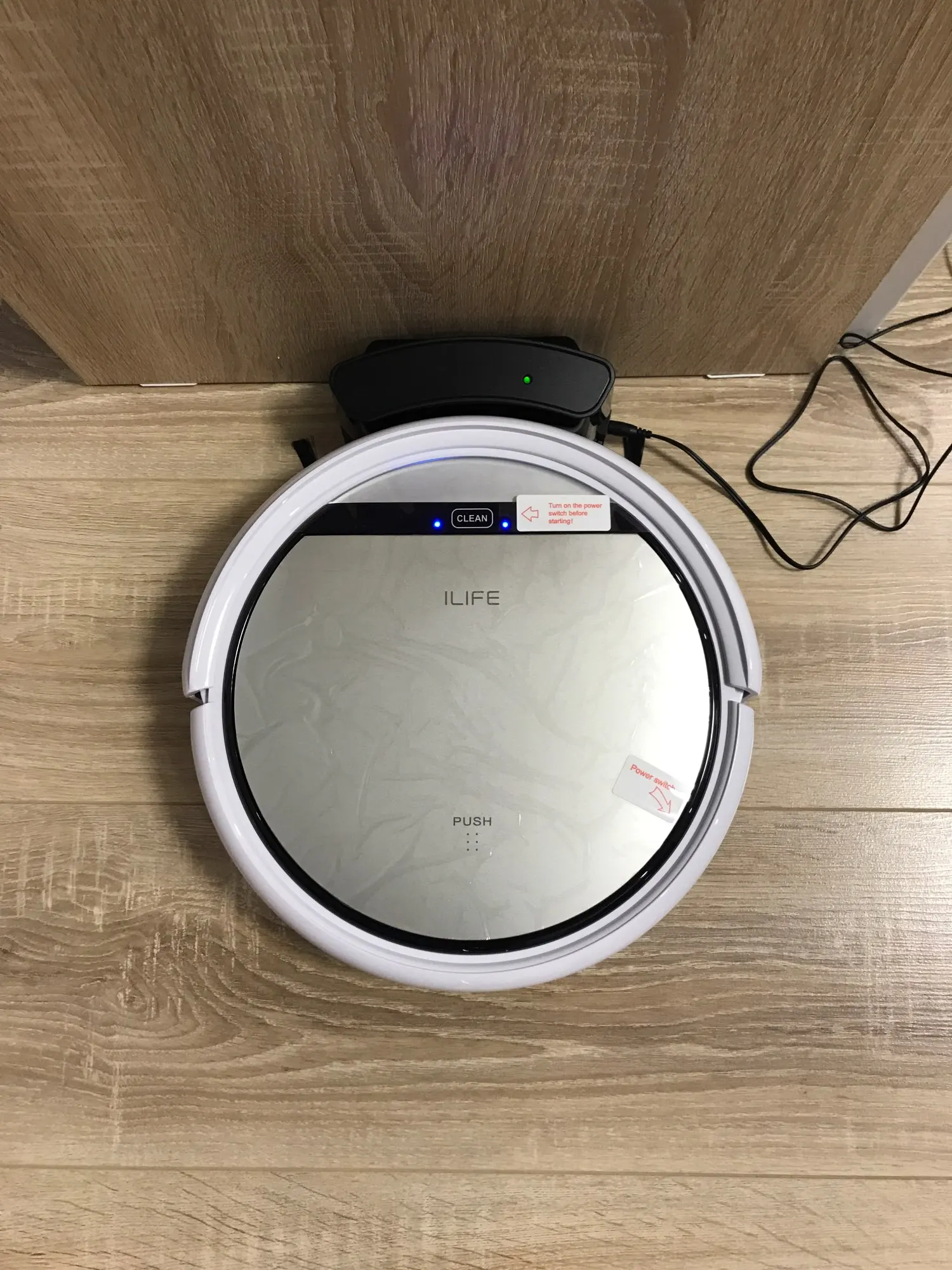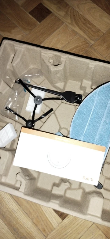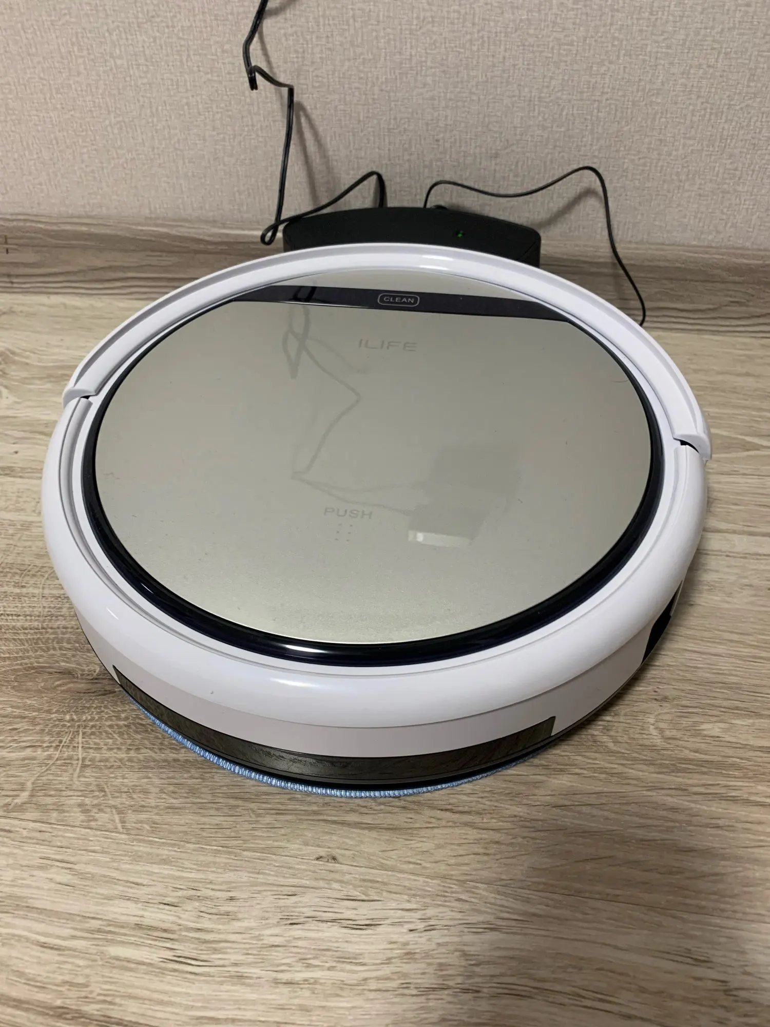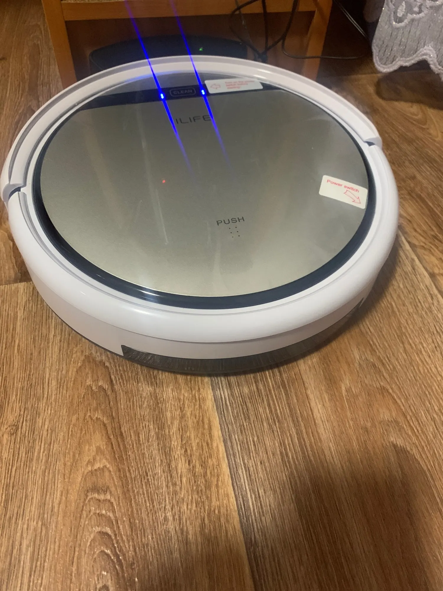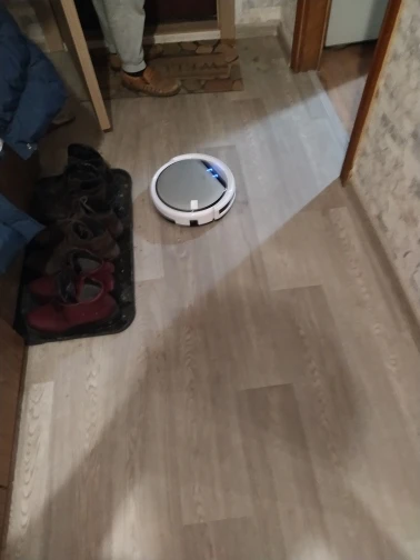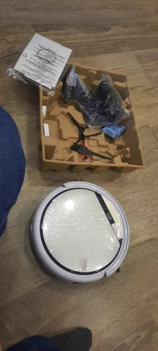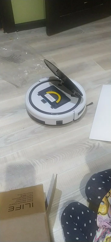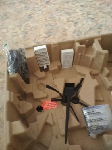 Ааааа! Он крутой! Покупала 11.11, но только чейчас удалось протестировать. Это первый робот-пылесос и брала я его в подарок. Ориентировалась на отзывы, рейтинг и приемлемую цену) пришёл очень быстро, забрала из Пятерочки. Упакован в картонную фирменную коробку с ручкой. В комплекте: пылесос, в нем собраный бокс под мусор, пульт, батарейки, две запасные крутящиеся щётки, два сменных фильтра, насадка для протирки пола с тряпочкой на липучке, база, провод для базы, щеточка для чистки, запасная тряпочка, и инструкция на русском языке с гарантийным талоном. По всей квартире тестить не стала, но на ковёр заезжает без проблем. Об стены не бьётся, немного притормаживает перед припятствиями и меняет траекторию. Тестила минут 5 и результат можно наблюдать на фото. Шумит не сильно, тише, чем мой беспроводной Эл джи. Пока не могу сказать, как находит базу, но обязательно дополню отзыв позже. На первый взгляд отличная вещь!