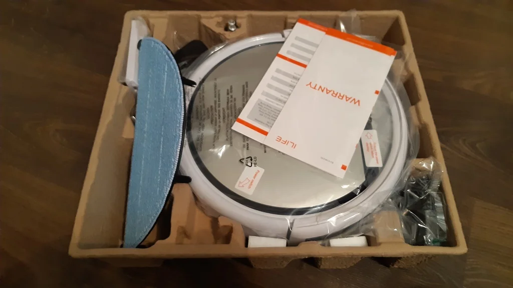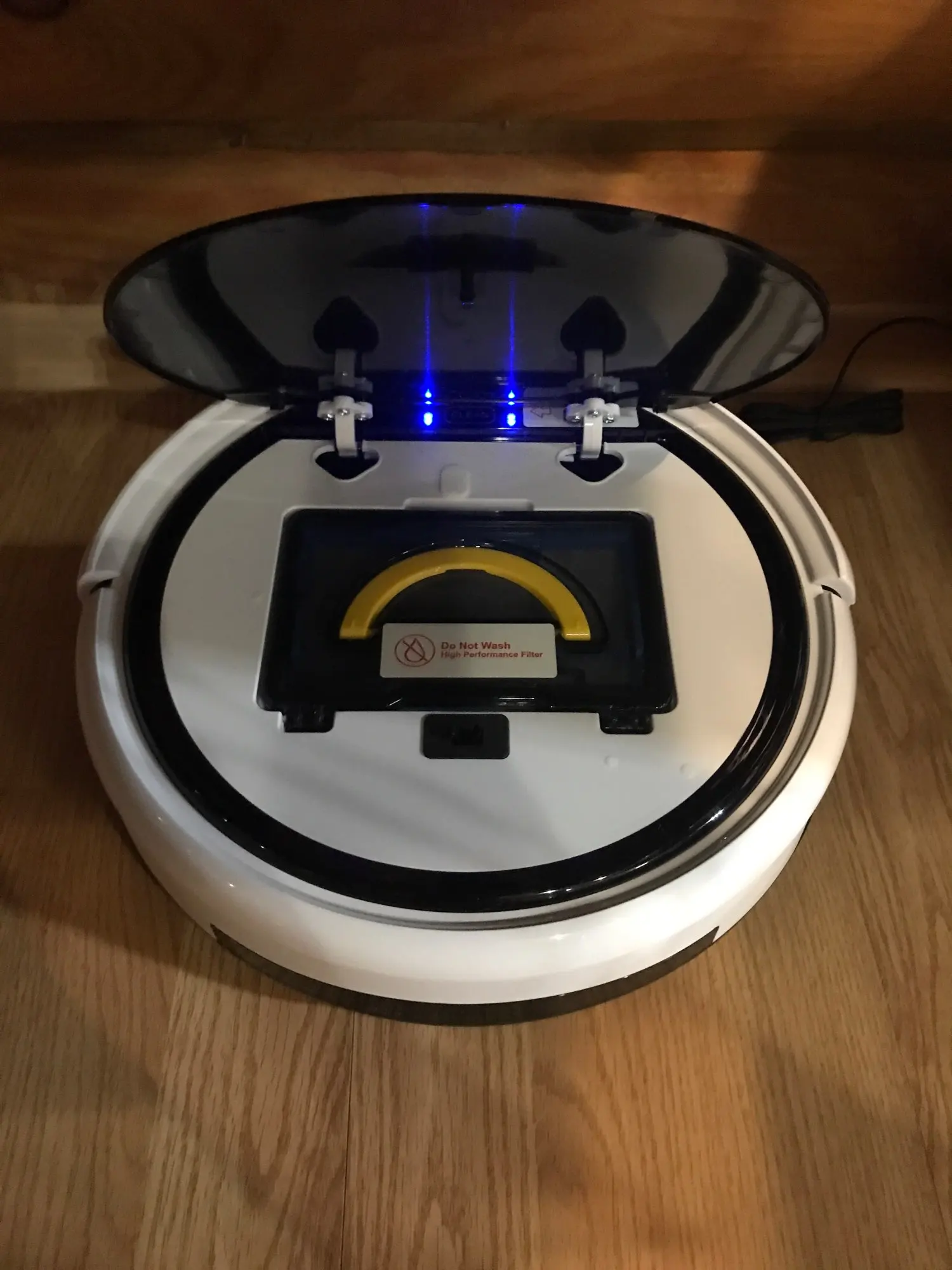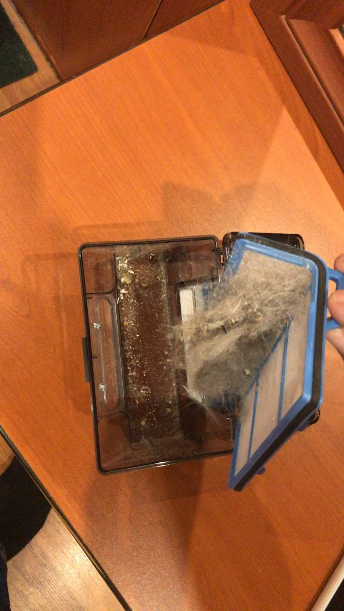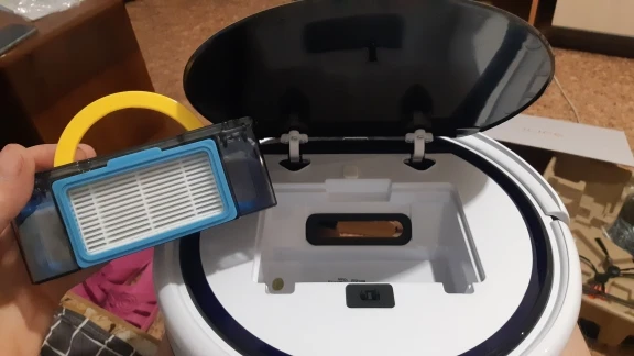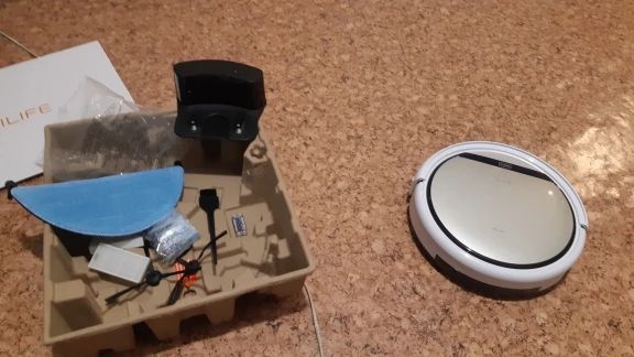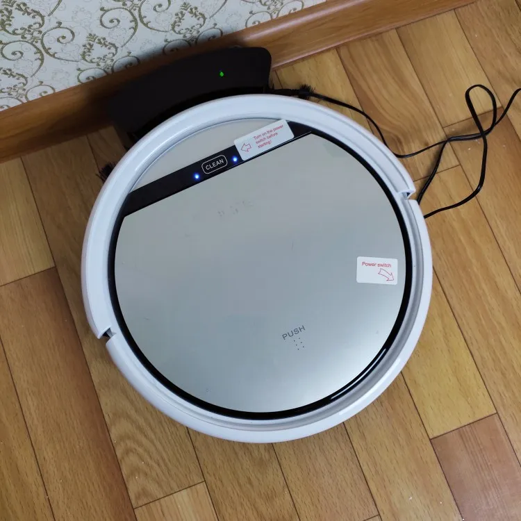 Ааааа! Он крутой! Покупала 11.11, но только чейчас удалось протестировать. Это первый робот-пылесос и брала я его в подарок. Ориентировалась на отзывы, рейтинг и приемлемую цену) пришёл очень быстро, забрала из Пятерочки. Упакован в картонную фирменную коробку с ручкой. В комплекте: пылесос, в нем собраный бокс под мусор, пульт, батарейки, две запасные крутящиеся щётки, два сменных фильтра, насадка для протирки пола с тряпочкой на липучке, база, провод для базы, щеточка для чистки, запасная тряпочка, и инструкция на русском языке с гарантийным талоном. По всей квартире тестить не стала, но на ковёр заезжает без проблем. Об стены не бьётся, немного притормаживает перед припятствиями и меняет траекторию. Тестила минут 5 и результат можно наблюдать на фото. Шумит не сильно, тише, чем мой беспроводной Эл джи. Пока не могу сказать, как находит базу, но обязательно дополню отзыв позже. На первый взгляд отличная вещь!