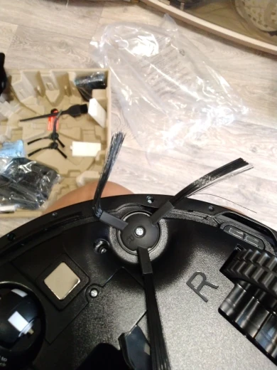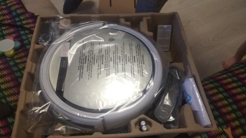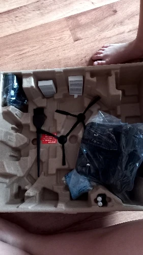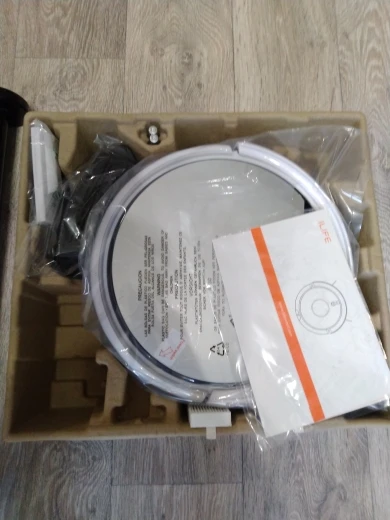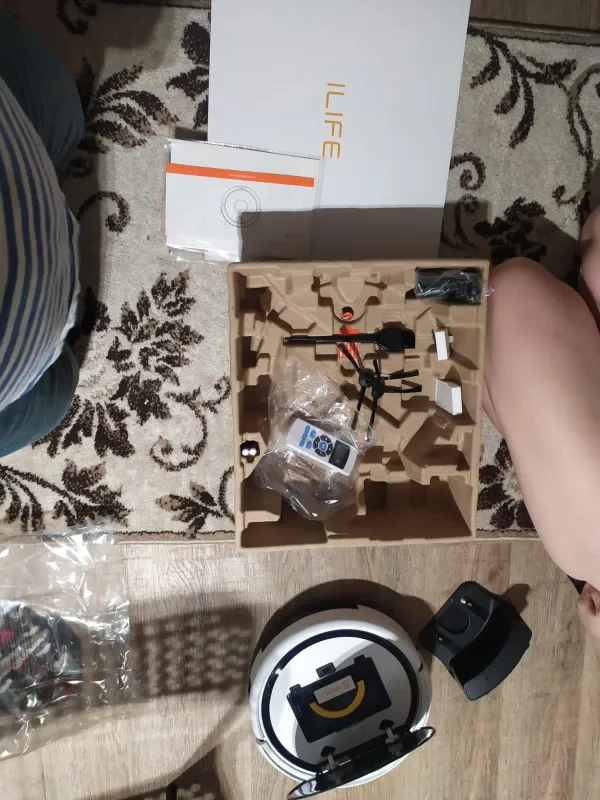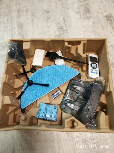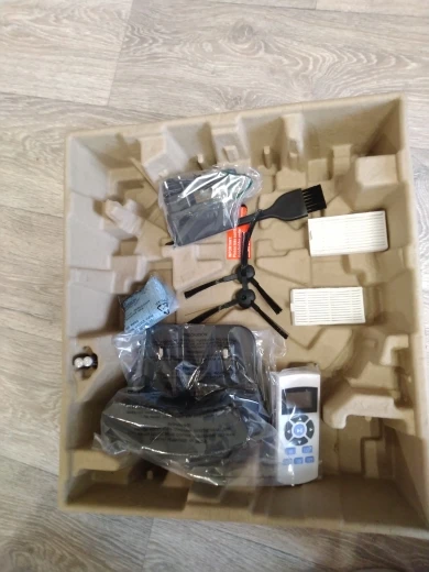 Если вы ещё ранее не приобретали себе такого товарища, это самая прекрасная модель, чтобы решить это недоразумение! Доставку осуществили до квартиры через 1,5 недели после оплаты. Все целое, от коробки до пульта. На втором фото видно, что положили все, что нужно и с запасом. На ковёр с ворсом 3см заезжает без проблем, станцию находит, батареи хватает на час точно, за это время на 3-4 раза проходит отлично 46кв2. У меня лабрадор, теперь дома ни шерсти, ни мелкого мусора. Одно сплошное счастье.