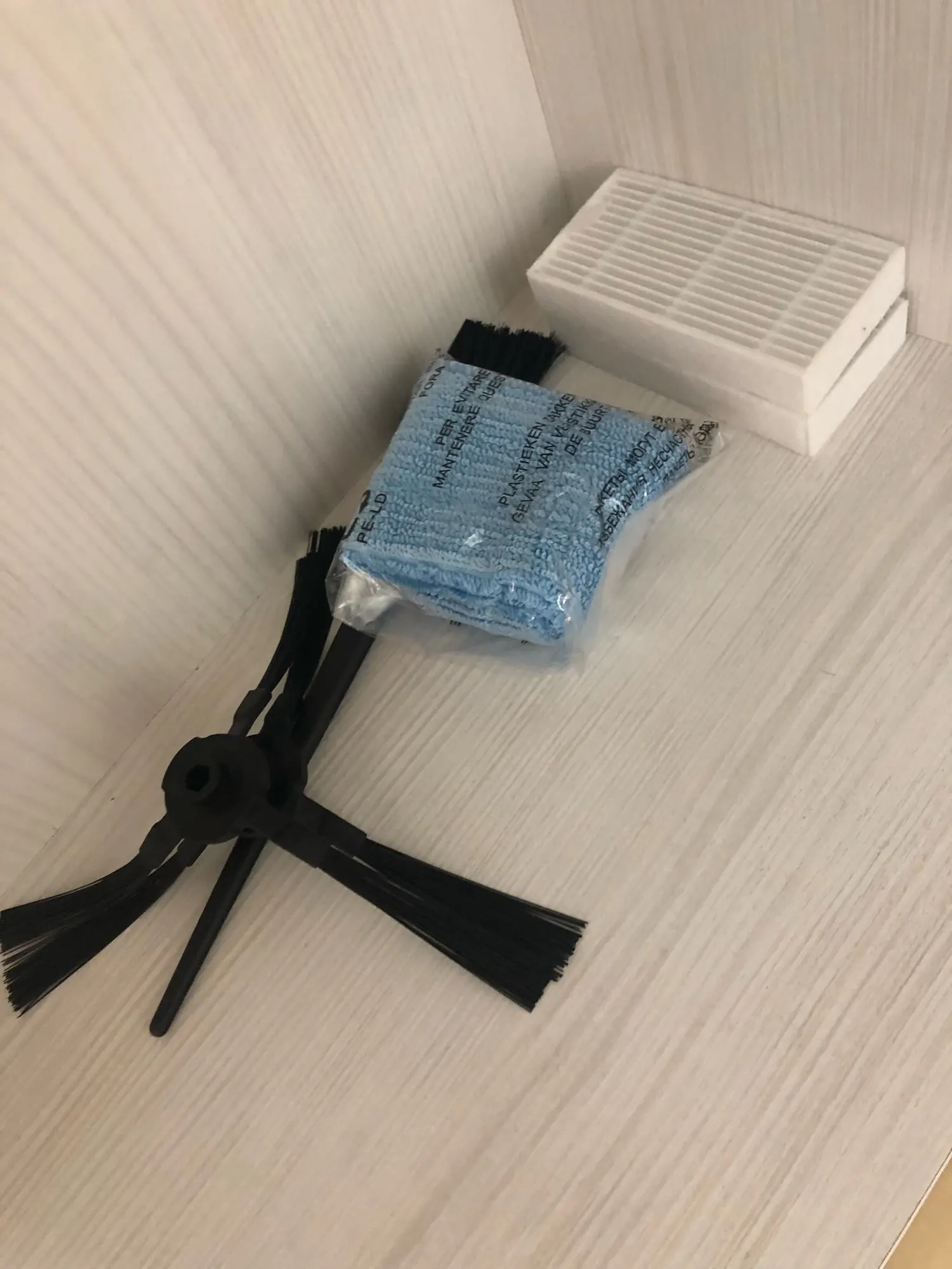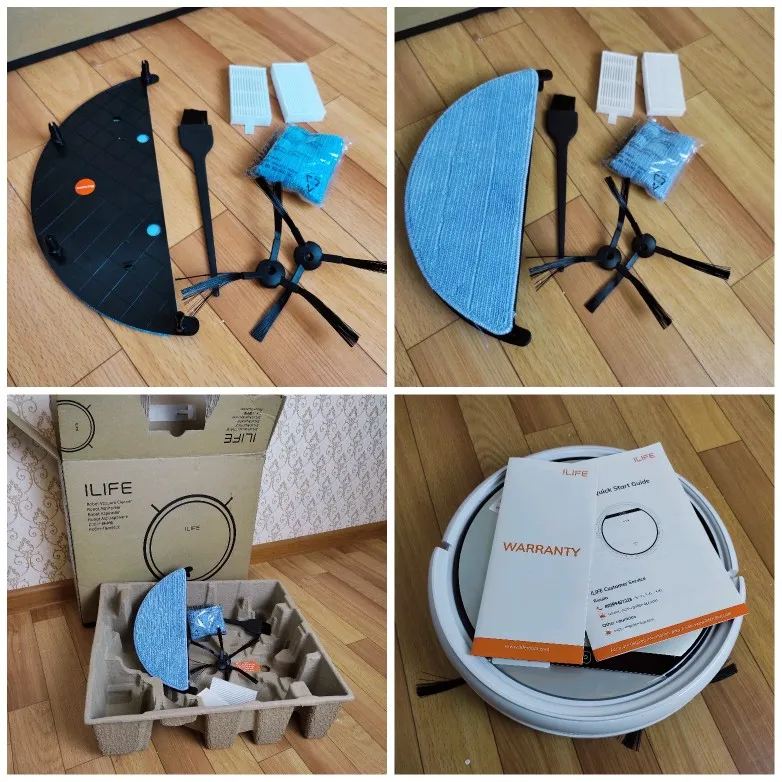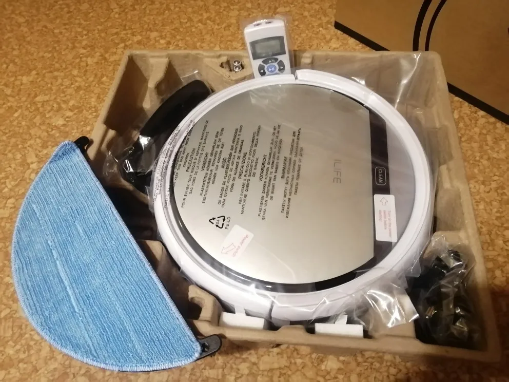 Заказывала 11.11, пришёл за 6 дней, коробка без повреждений. В наборе запасные щеточки, тряпка, фильтр, пульт и батарейки на него. Прост в управлении, можно направлять пультом. Немного шумноват.
