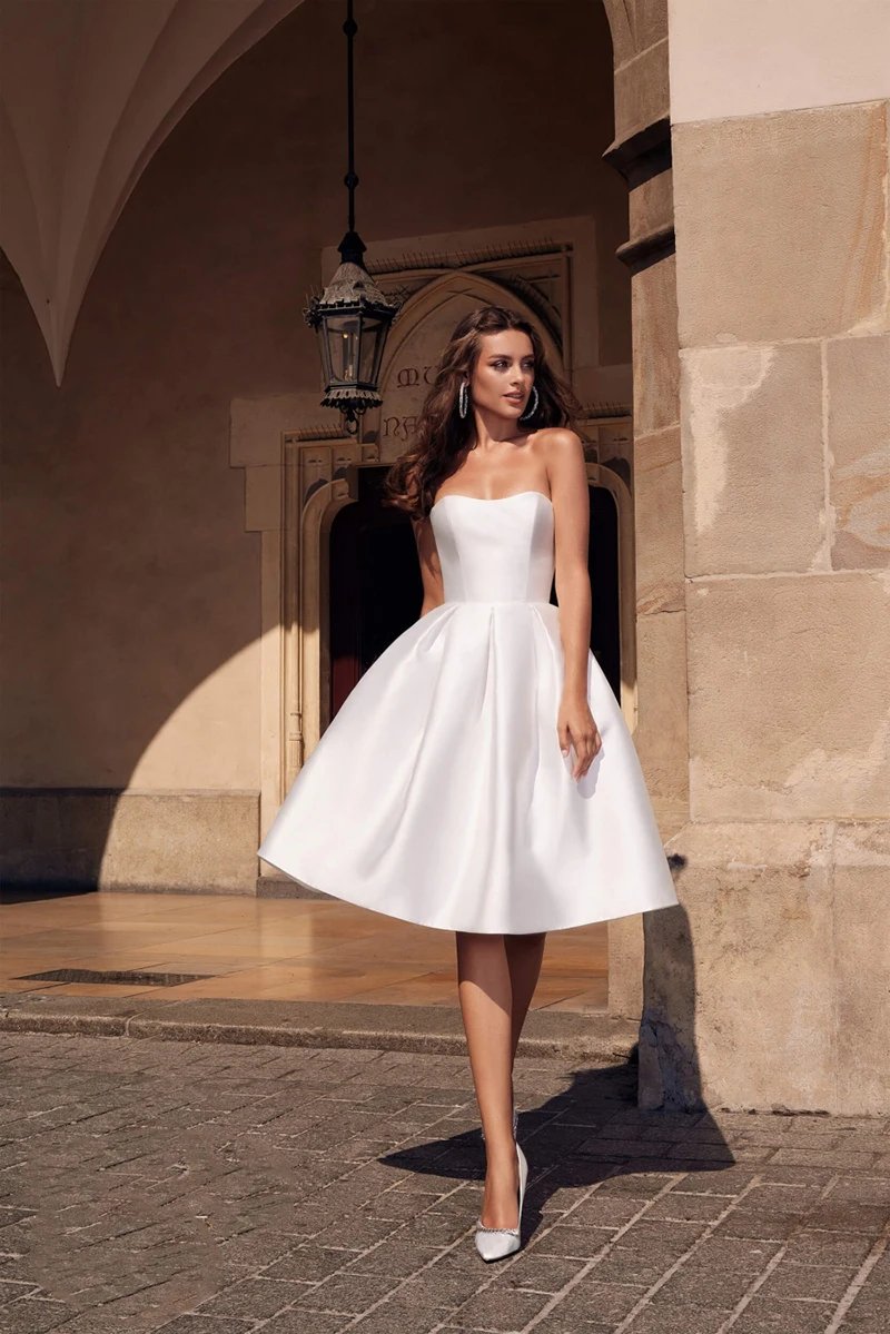 Простое свадебное платье-трапеция Verngo, мягкое атласное Короткое свадебное платье, элегантное женское платье, Турция 2019, свадебные платья