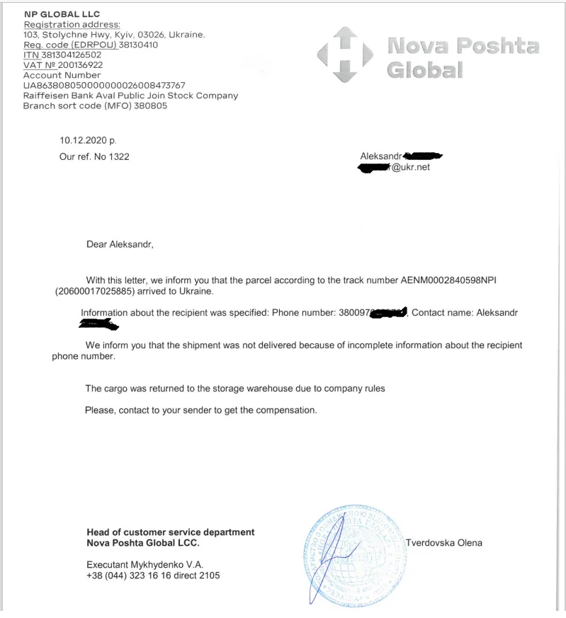 Посылку не получил. Спор проиграл. Утверждают,что я посылку уже получил. Предоставил документ от Nova Poshta Global, с описанием проблемы - в Китае указали неточные мои координаты. Результата нет. Пересылали доставкой Алиэкспрес - поэтому и спор проиграл, кто ж сам себя будет наказывать! С этого магазина не получил три посылки. I did not recieve the package. The dispute is lost. They say that I have already received the package. Provided a document from Nova Poshta Global, with a description of the problem - in China they indicated my inaccurate coordinates. No result. They were sent by Aliexpress by delivery - that's why the dispute was lost, who will punish himself! I didn't receive three packages from this store.