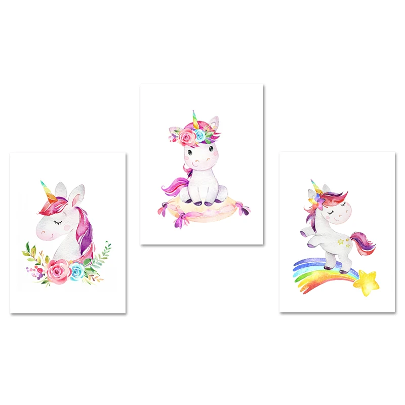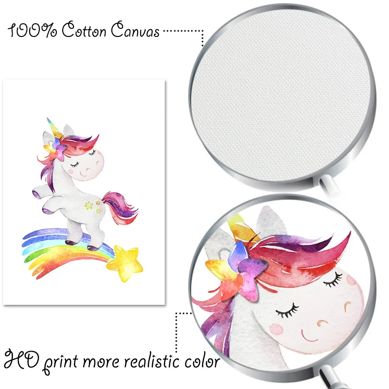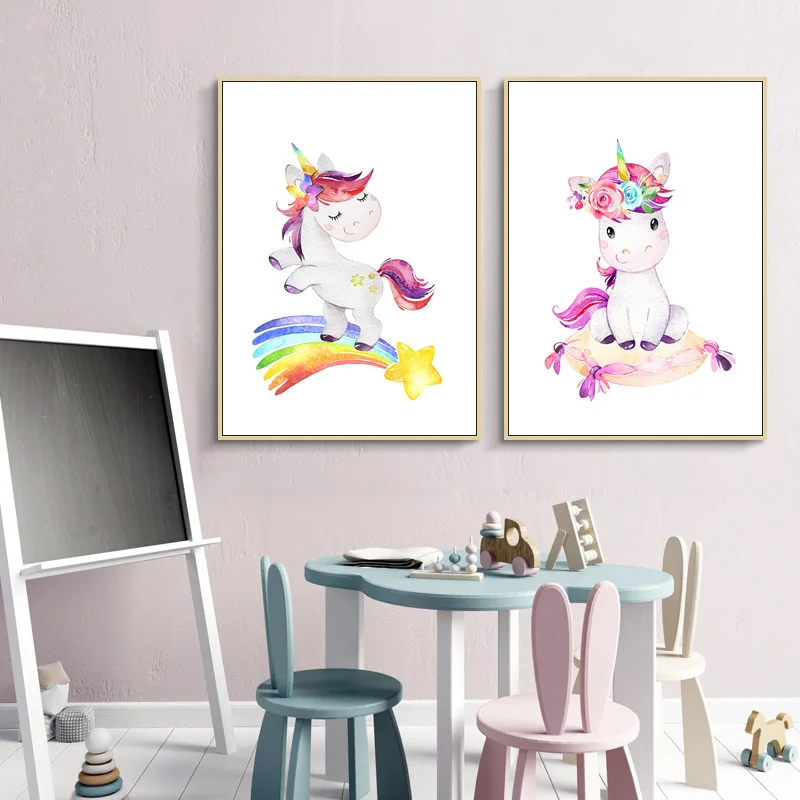 Радужный Единорог для детской стены, художественный холст, постер, скандинавский, для маленькой девочки, для спальни, Декоративный принт, картина, скандинавский домашний декор