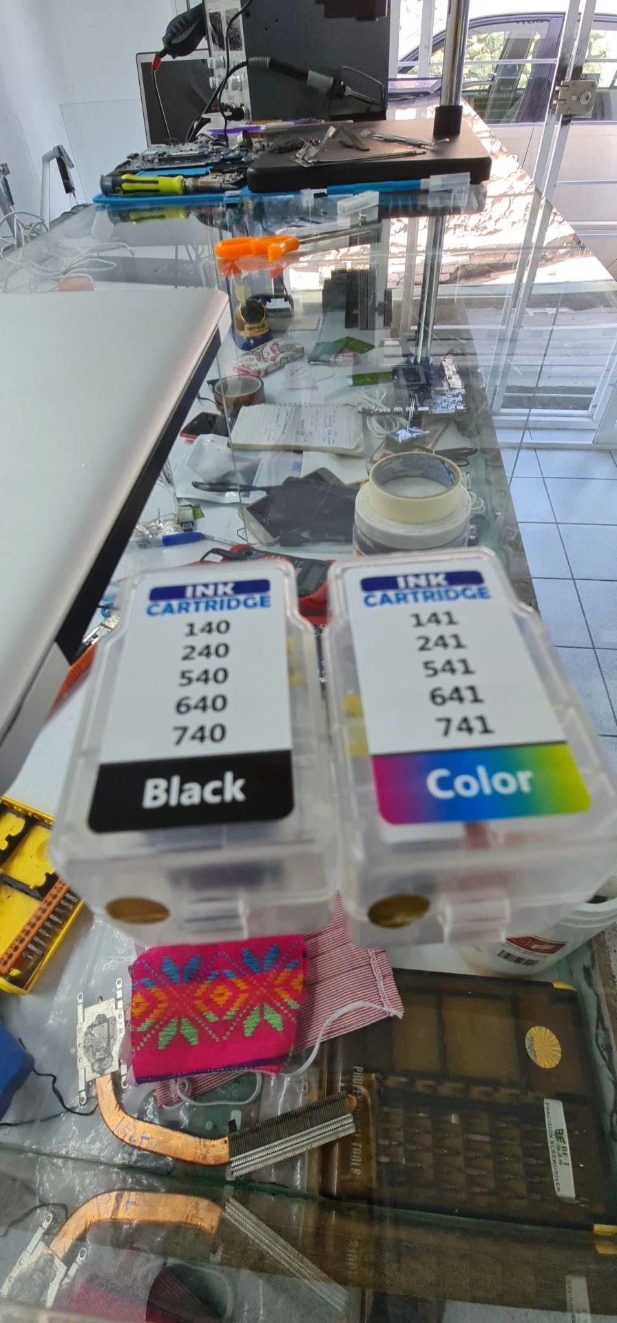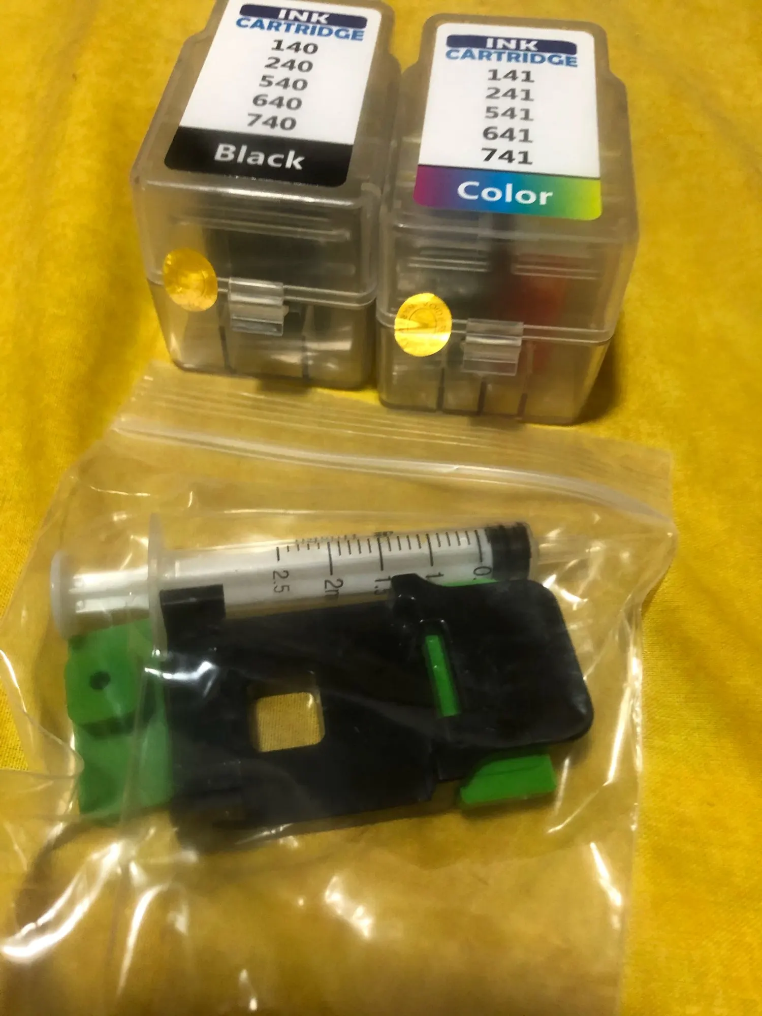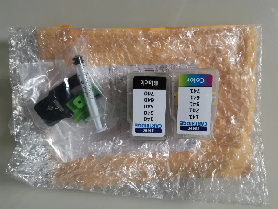 Заказ прибыл хорошо упакован, но цвета не подходят для картриджа, красный, если, но синий и желтый, нет, тогда принтер не обнаруживает их хорошо. :(