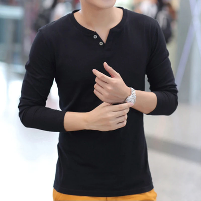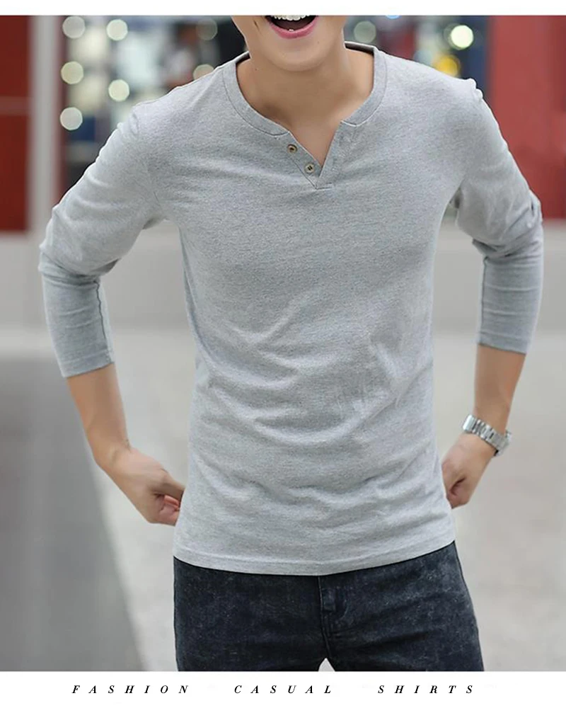 Новые осенние льняные Футболки с длинным рукавом, мужские повседневные мужские топы, футболка, мужские Модные топы с V-образным вырезом, однотонная белая хлопковая