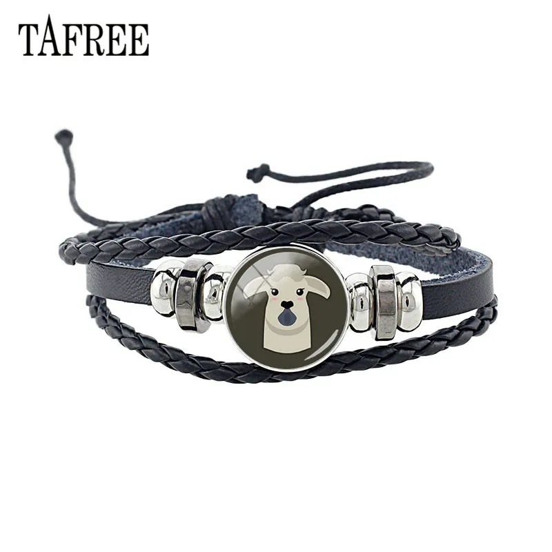 TAFREE Милая кошка стеклянные шармы кожаный браслет регулируемый че...