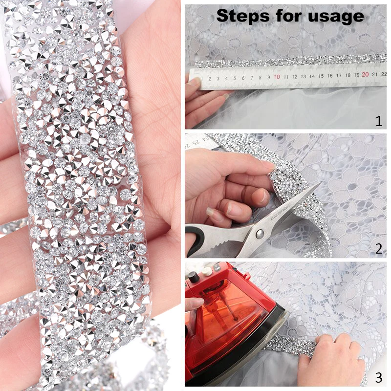 1 ярд Горячая фиксация блестящее платье стразы мотивы лента Кристалл железо на патчи аппликация Исправление Strass свадебное платье аксессуары