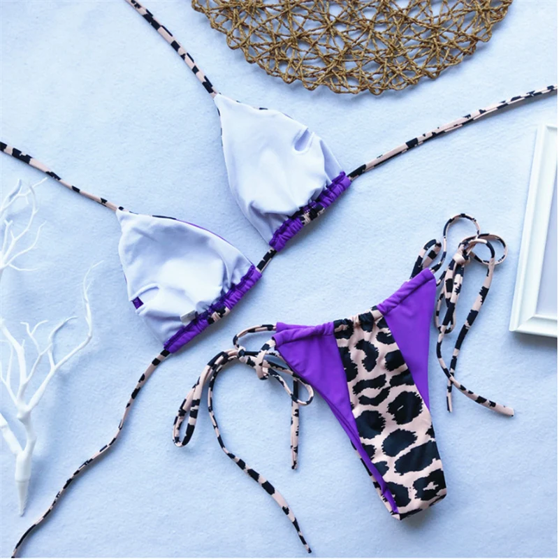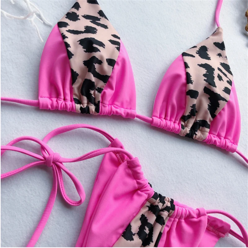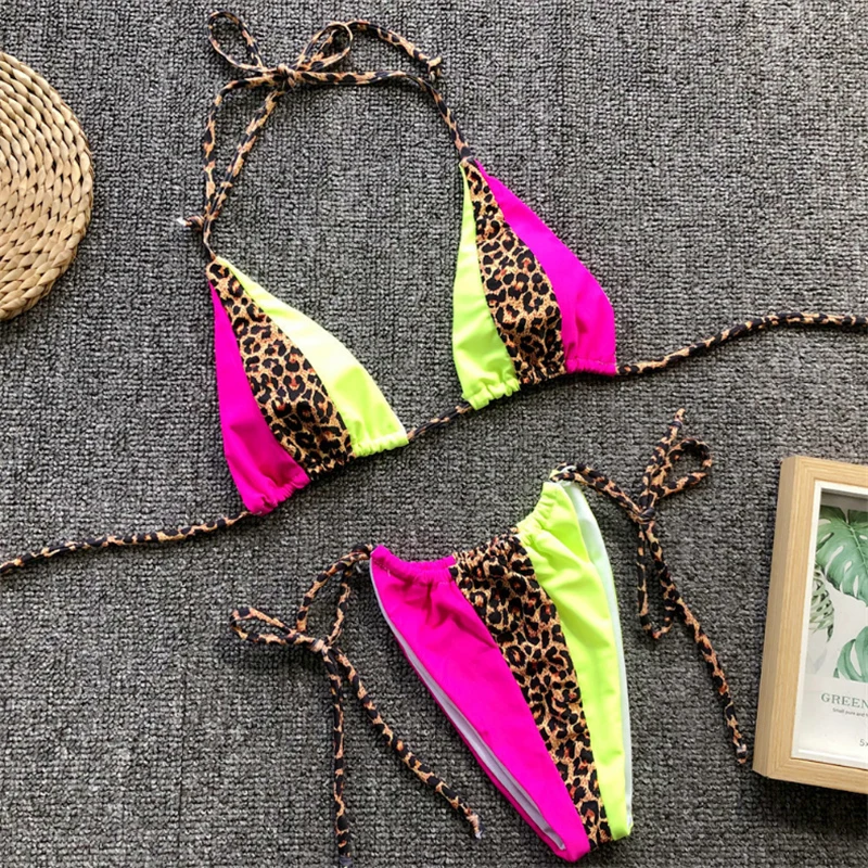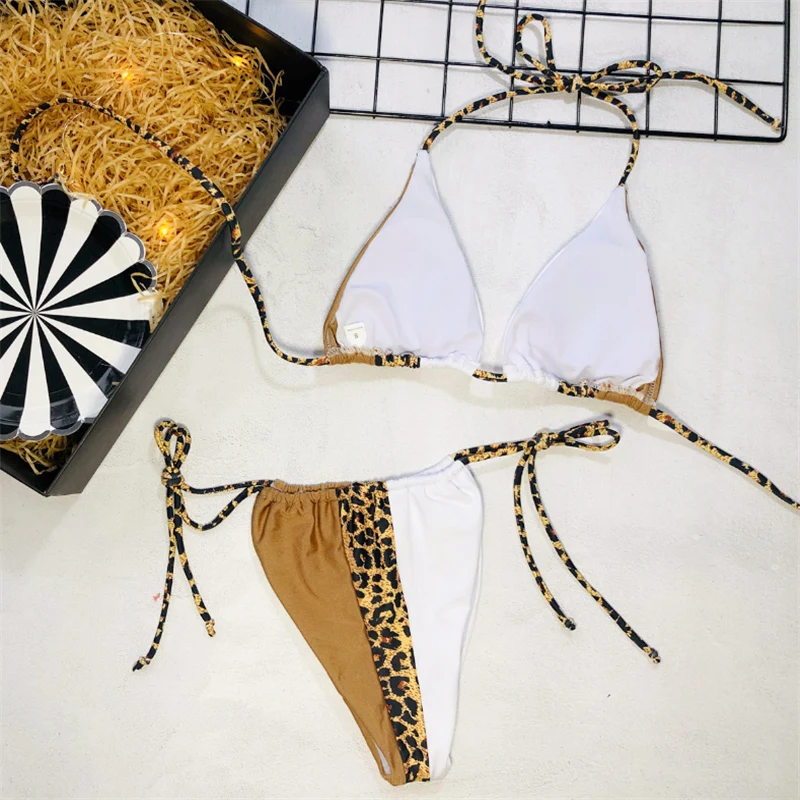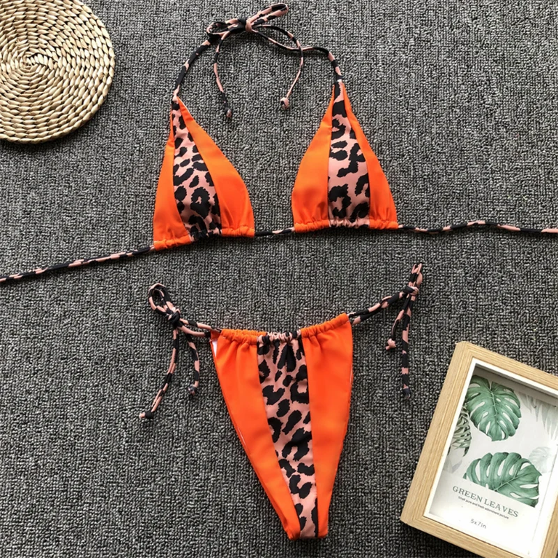 GNIM HL Сексуальное Бандажное бикини купальники НОВИНКА 2019 Леопардовый сшитый Купальник бразильский купальник с лямкой через шею бикини купальный костюм