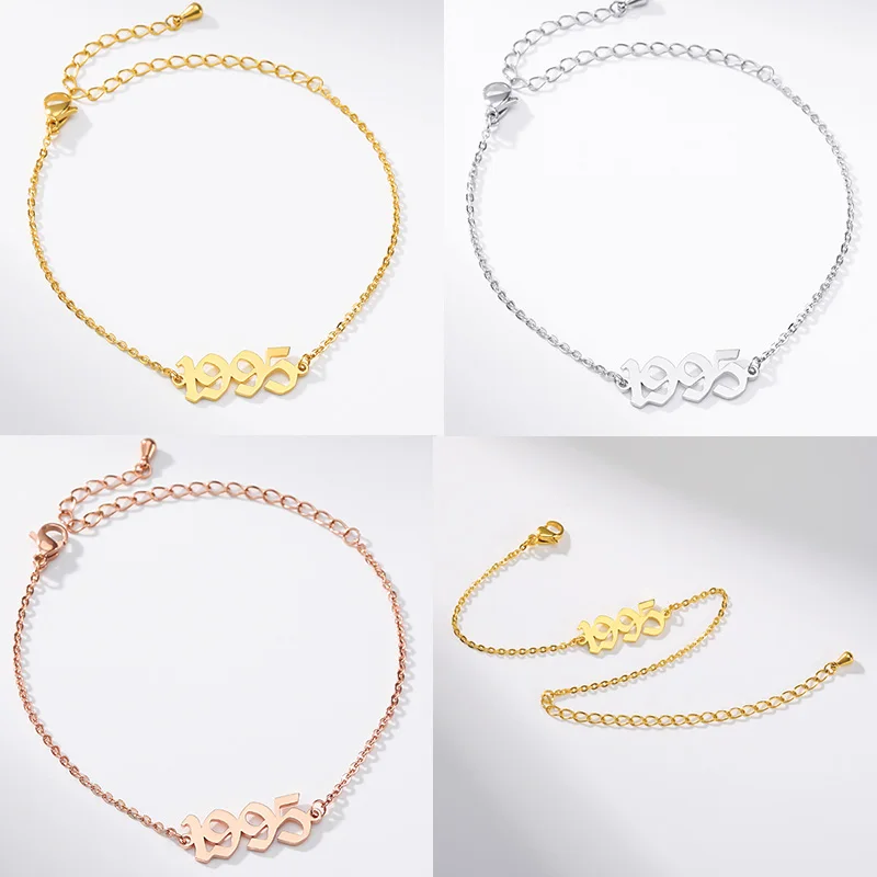 Минимализм количество ножной браслет для женщин ювелирные изделия для ног Нержавеющая сталь Золото специальные даты рождения год ножные браслеты подарки дружбы