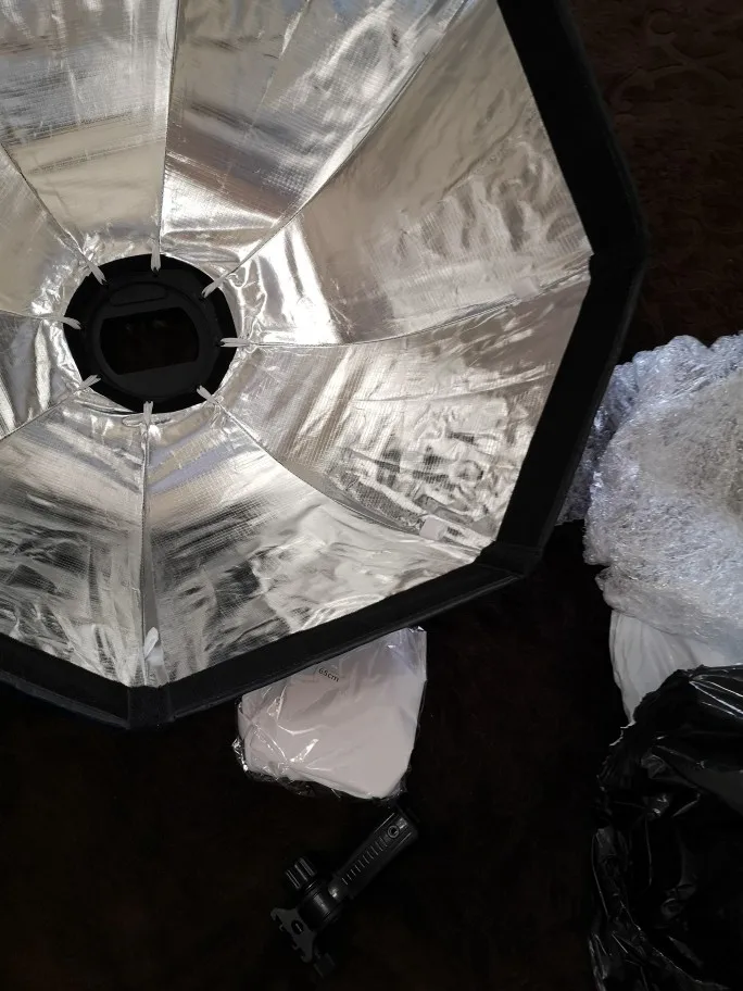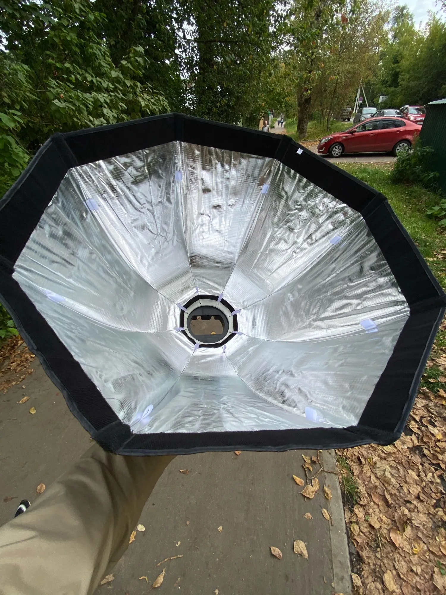 Отличный октобокс. Свои деньги он отыгрывпет по полной. Посылка пришла из России в Россию быстро через DHL. Перевозчик ничего не сломал, не загнул, за что ему отдельная благодарность. Я брал 90см диаметр для того, чтобы получать более мягкий светотеневой рисунок. И он справляется с этой задачей хорошо. Спицы на этом диаметре действительно туго натягиваются. Я натягивал через одну по кругу. А потом остальные ненатянутые. Так вроде легче. Разбор в том же порядке. Правда для разбора надо немного ещё оттянуть спицу. Женщинам, думаю, тяжеловато будет, но разработается со временем. Отдельно хочу сказать по ручке. Она литая и точно не должна сломаться, но вот с основной задачей держать вспышку справляется плохо. Если на улице снимать, где ветер или помощник будет крутить вертеть, то легко вспышка может вылететь из своего паза. Думаю дополнительно мотать изолентой. Все остальное супер.