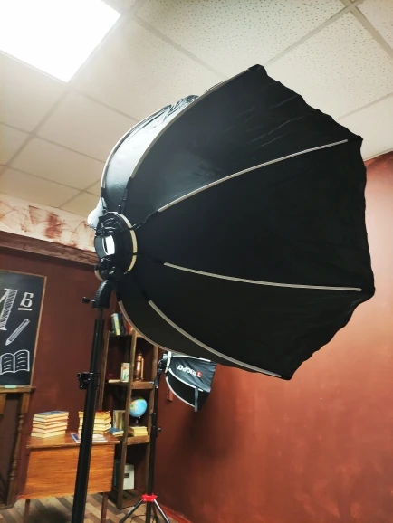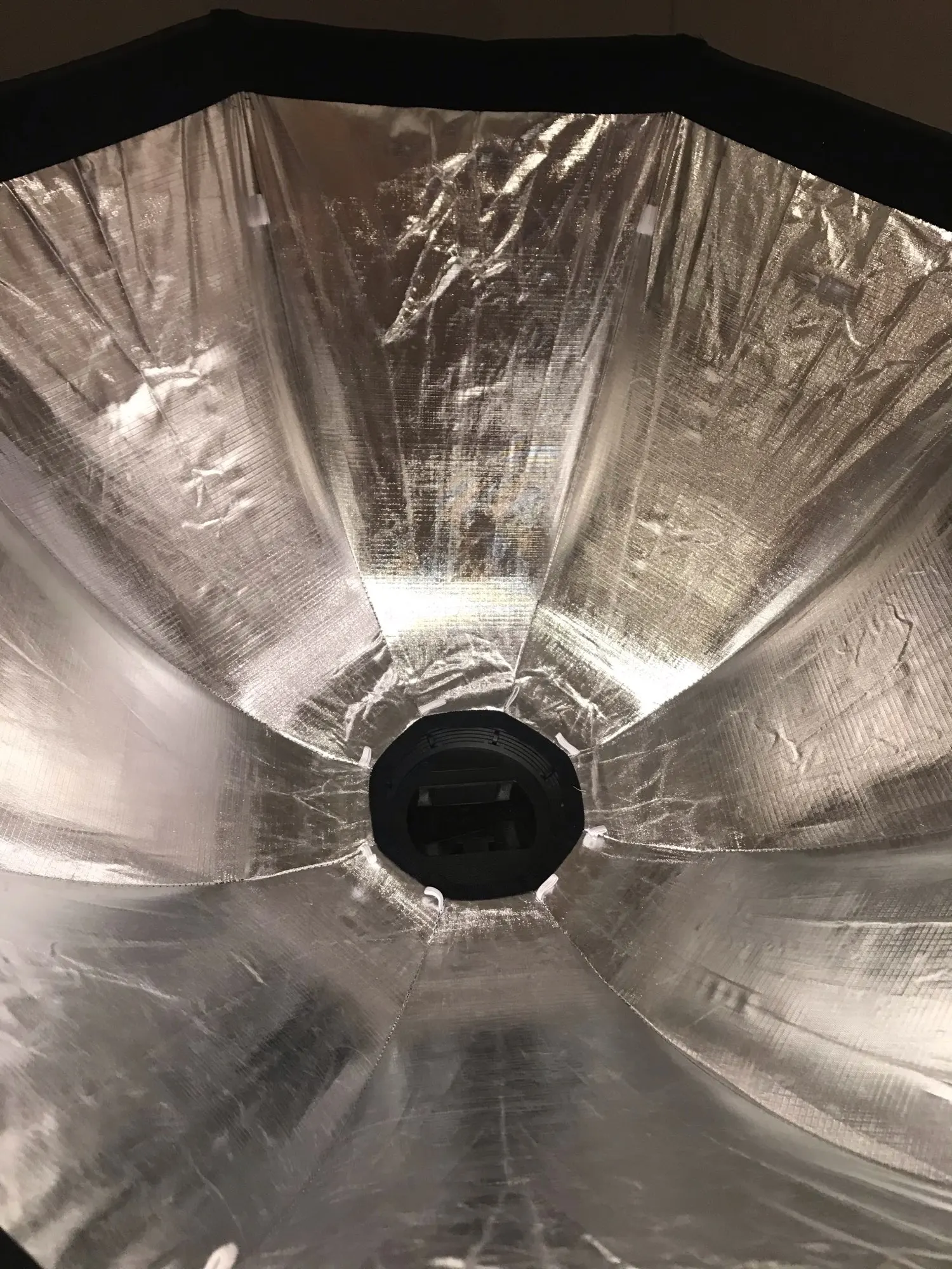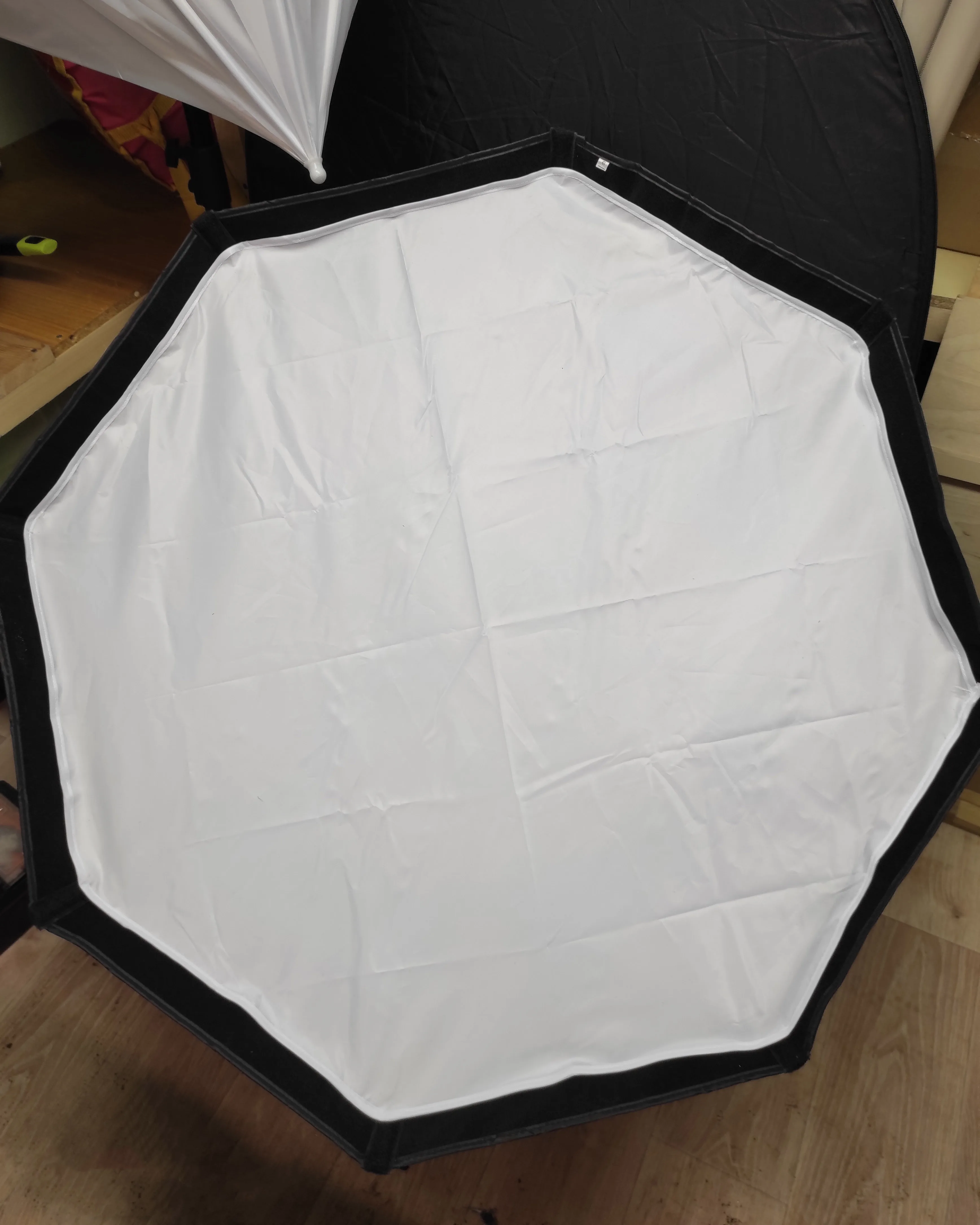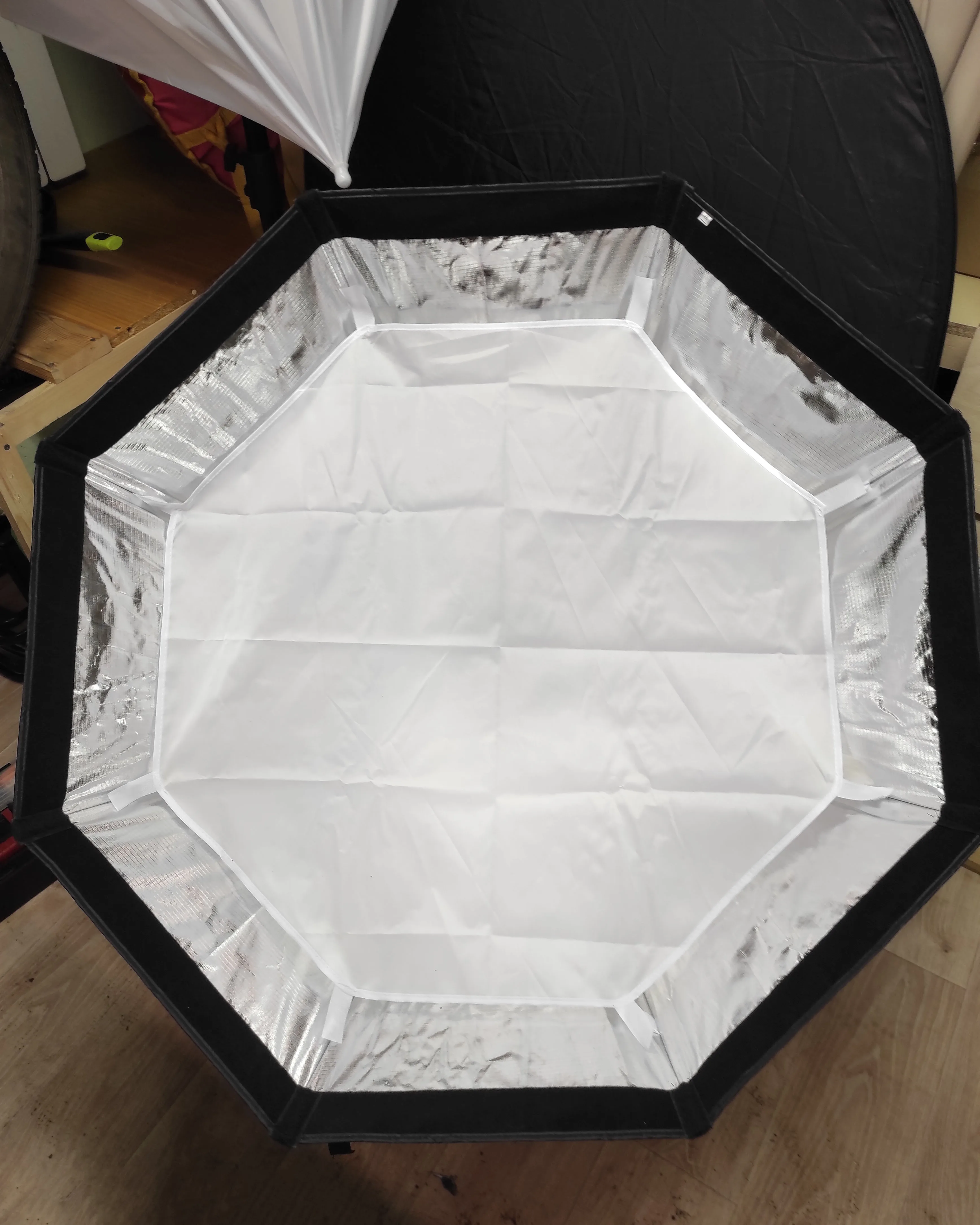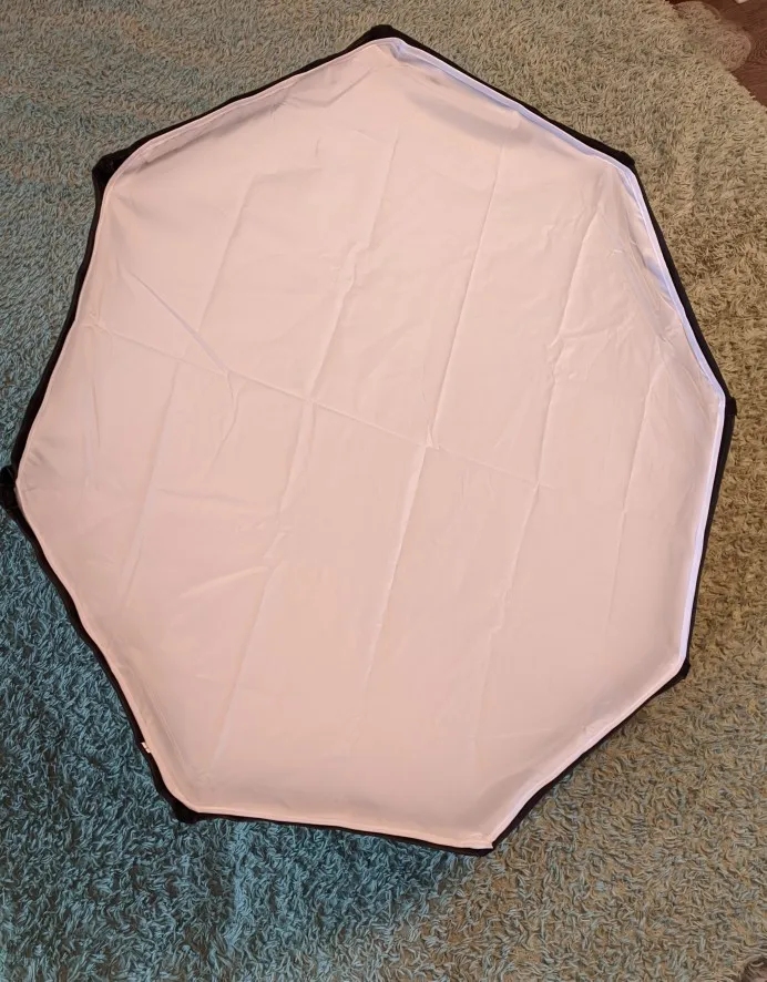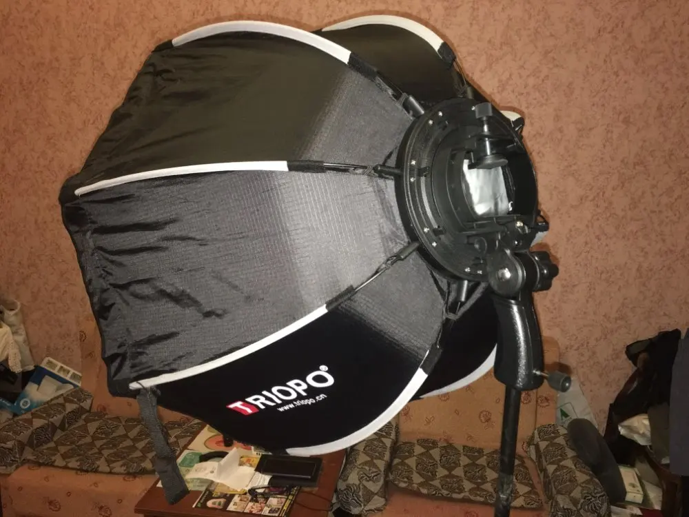 Хорошая вещь за свои деньги, только я бывзял 90 см, даже слабая вспышка заполнила 65 см, на диафрагме 2.5, iso 100 очень слабая вспышка (вед.число 33) стоит на 1/128, и все прекрасно освещается.