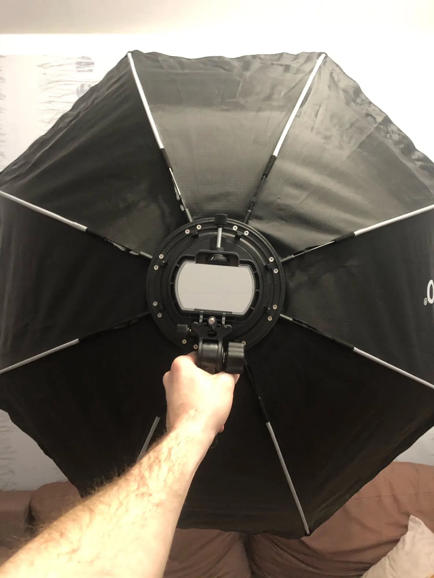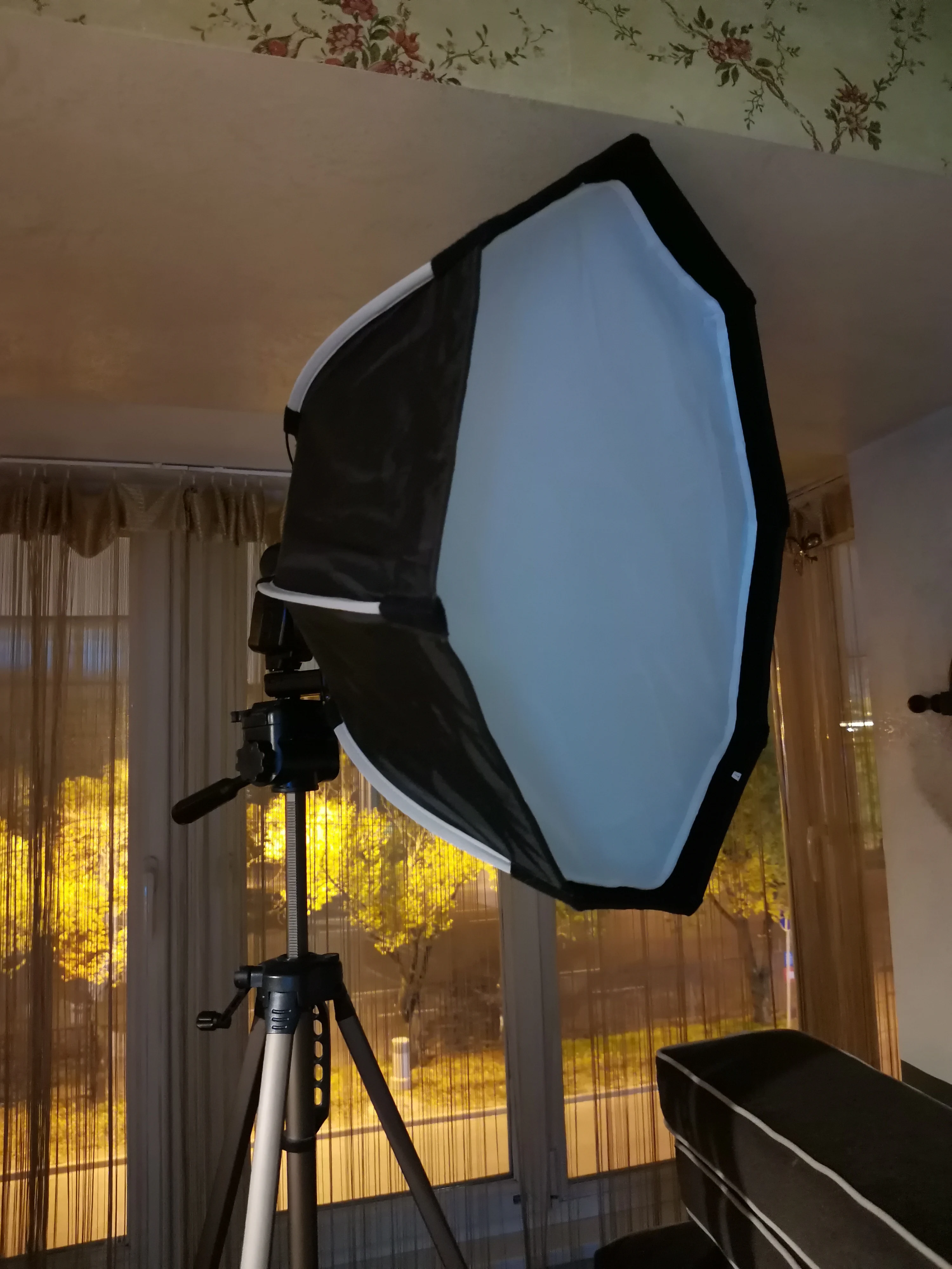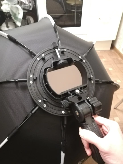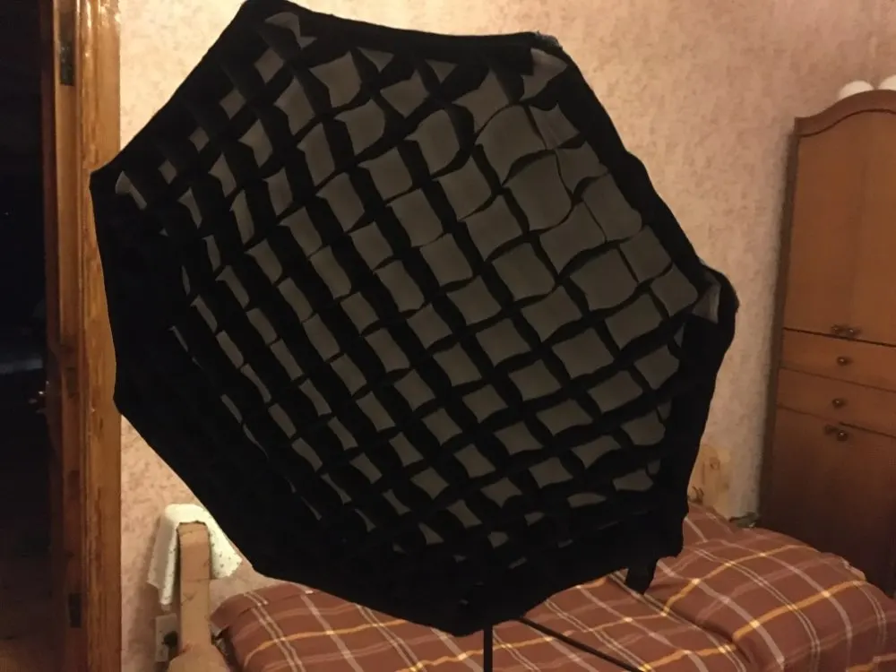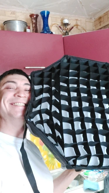 Доставка за три дня до двери по Москве. Всё пришло целым, собирается меньше чем за минуту, разбирается ещё быстрее. Это мой первый октобокс, взял 55 см, использую для портретной съёмки и результатом очень доволен. Заказал у этого продавца соты на свою модель.