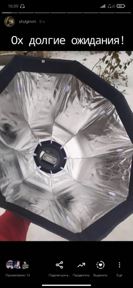 Быстрая доставка, общительный продавец! Попала в распродажу 11.11., думала доставка будет долгой из-за большого количества заказов. Получила 25.11., спасибо большое продавцу, попросила как можно скорее - вошёл в положение. Софтбокс хорошего качества, раскладывается немного туговато, но не критично.