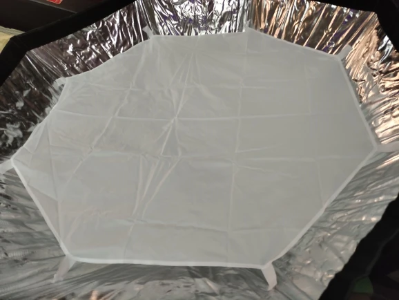 отличный октабокс, привезли через 5 дней после заказа до подъезда. сама окта очень качественная, легко разворачивается. минус это крепление ручки маленькой пластиковой вертушкой, раньше был винтовой зажим, было надёжнее.