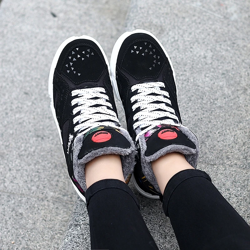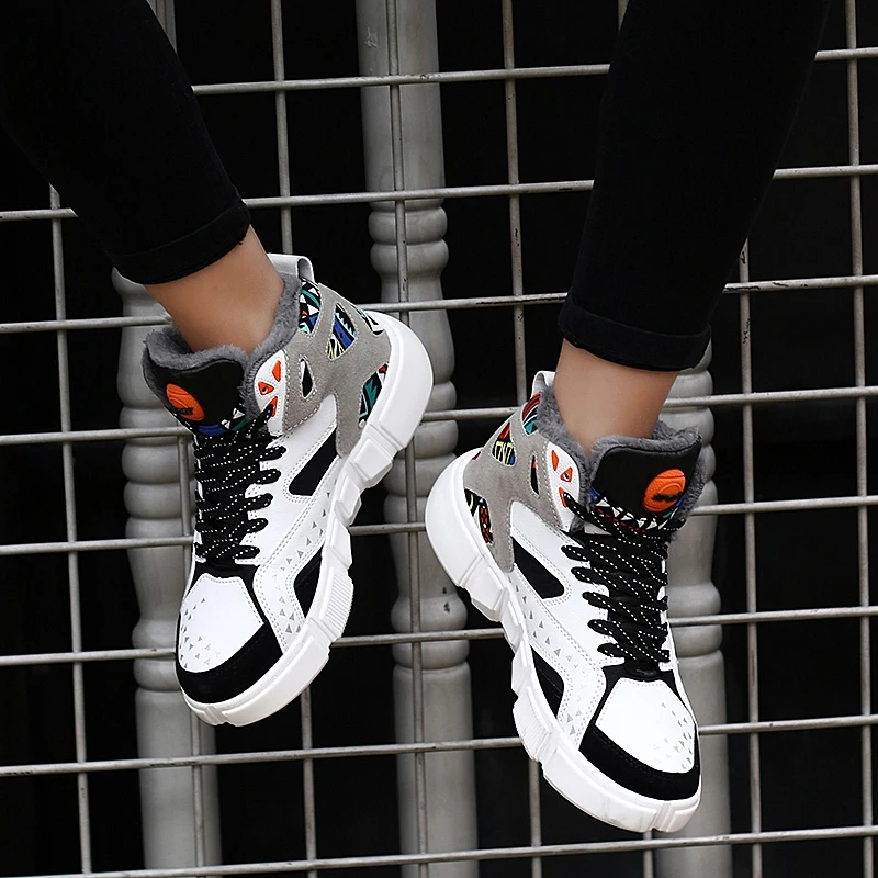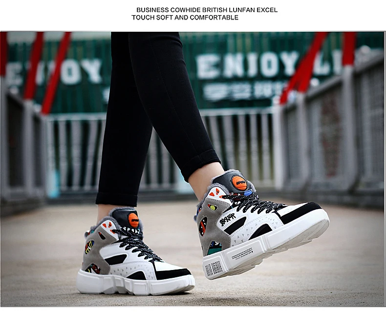 Кеды TUINANLE женские высокие, теплые зимние плюшевые кроссовки на платформе с граффити, Белые кеды для влюбленных, Размер 11