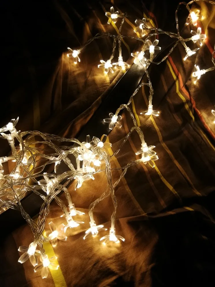 Светодиодная Рождественская гирлянда с цветами, Сказочная гирлянда с теплым белым светом, праздничное украшение для дома, комнаты, бадзала, свадьбы