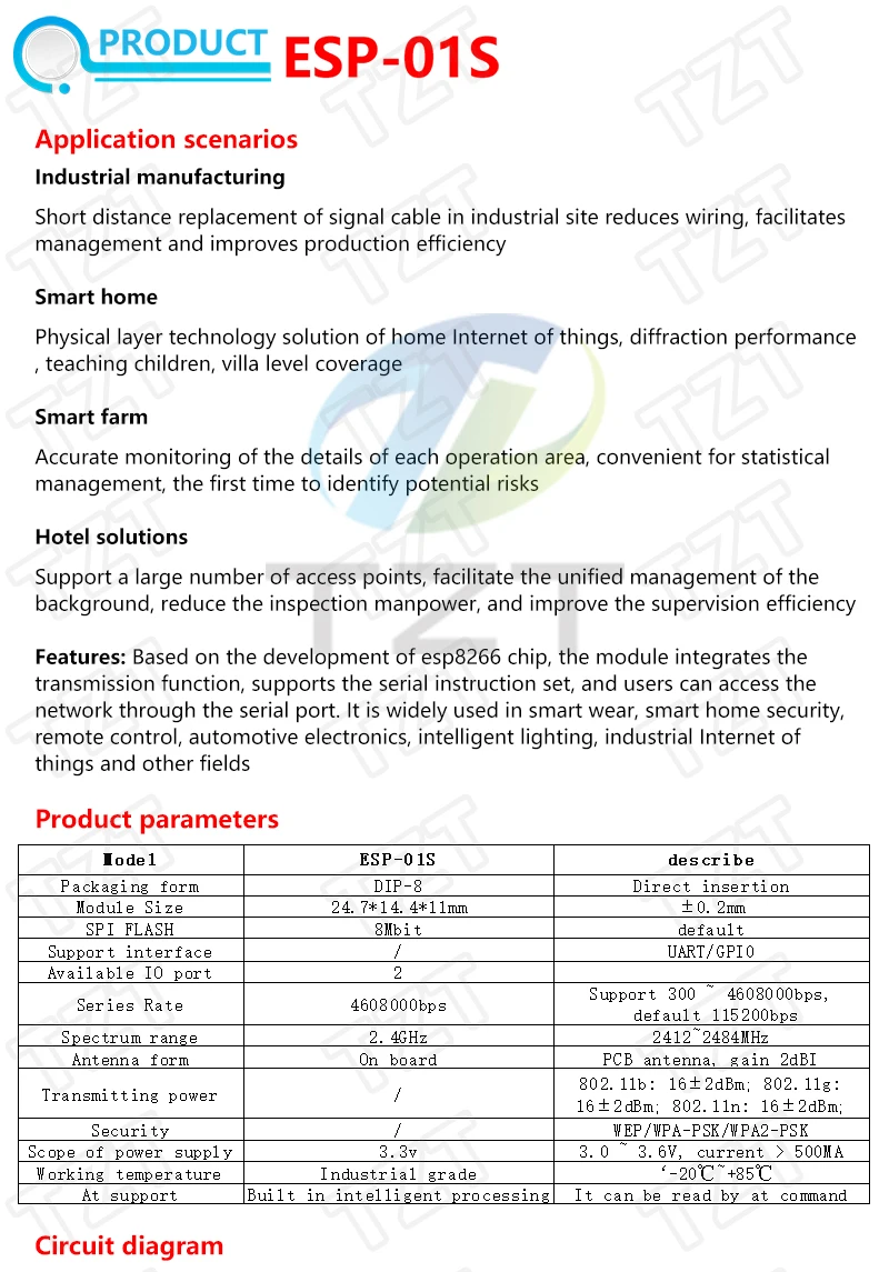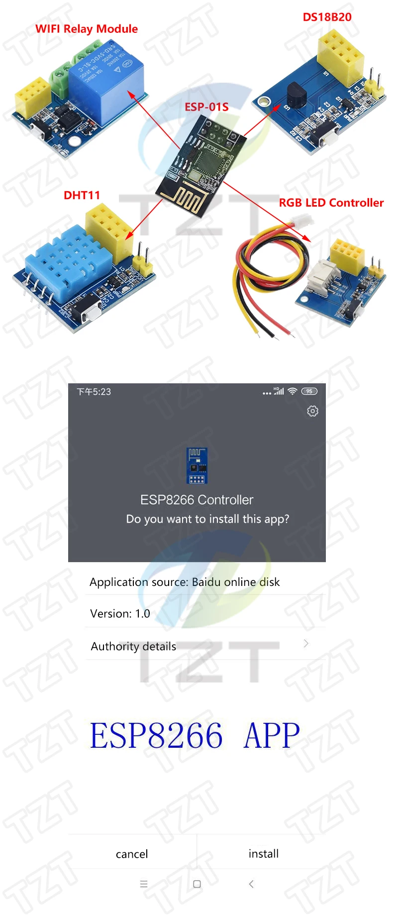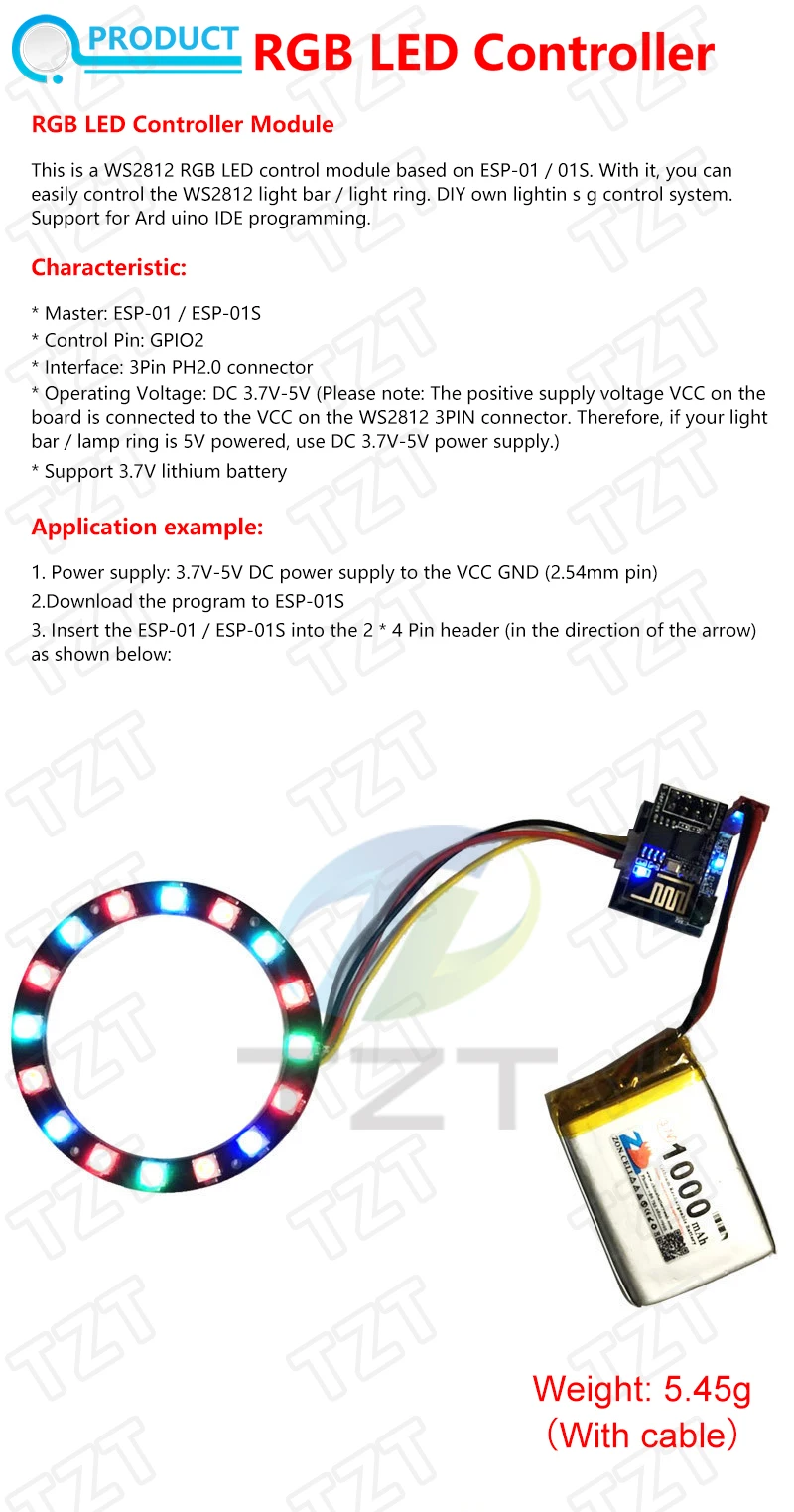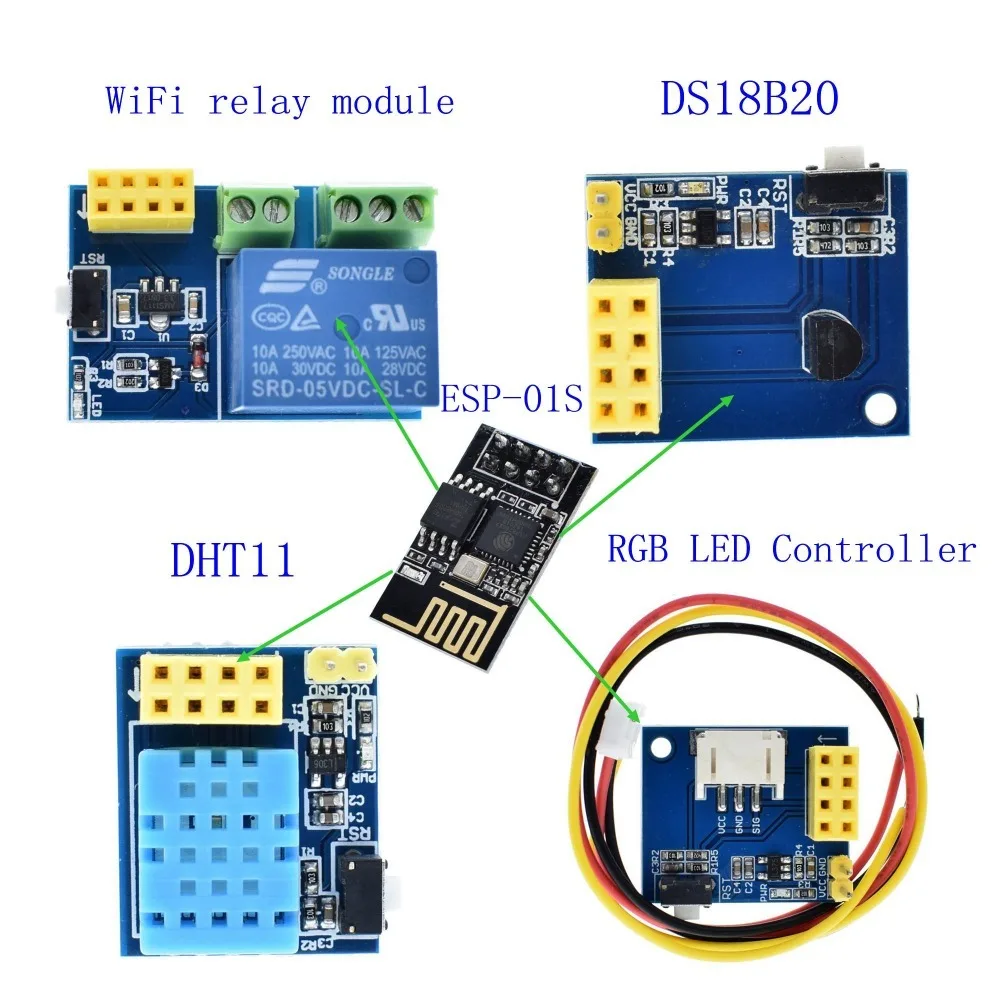 Релейный модуль TZT ESP8266, 5 В, С Wi-Fi, DS18B20, DHT11, RGB светодиодный подсветка, дистанционное управление, управление через приложение для умного дома, ESP-01S