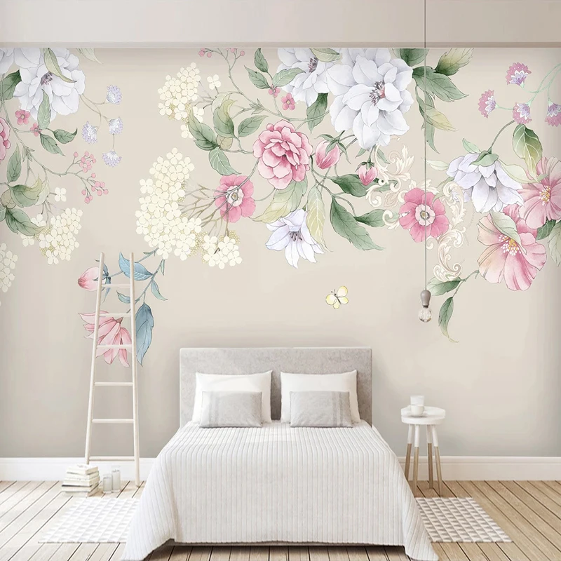 3D настенная бумага для спальни, креативная настенная живопись, современный пасторальный цветок, водонепроницаемая холщовая ткань, большая настенная бумага