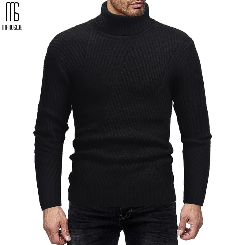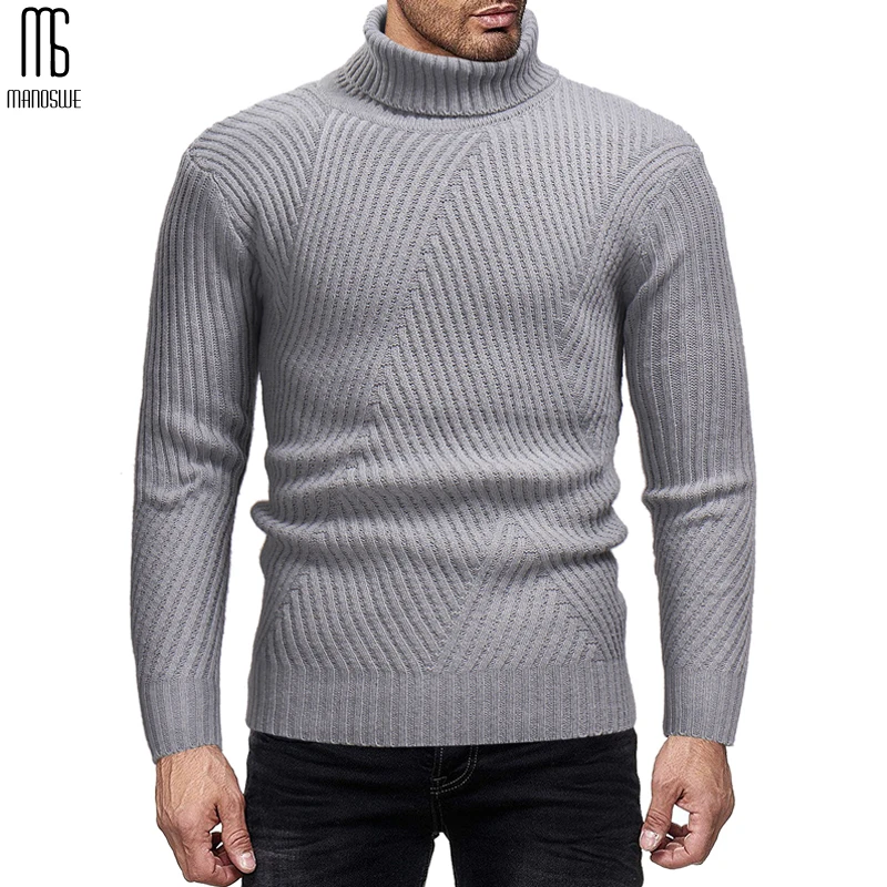 Мужской пуловер с высоким воротником Manoswe, однотонный облегающий Повседневный трикотажный джемпер, Осень-зима 2019