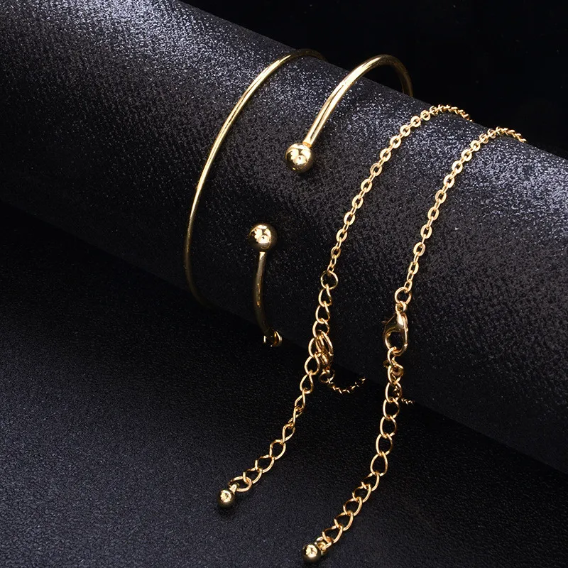 Женская богемная цепочка Modyle, открытая круглая цепочка с листьями, ювелирное украшение, подарок на день Святого Валентина, набор с золотым браслетом