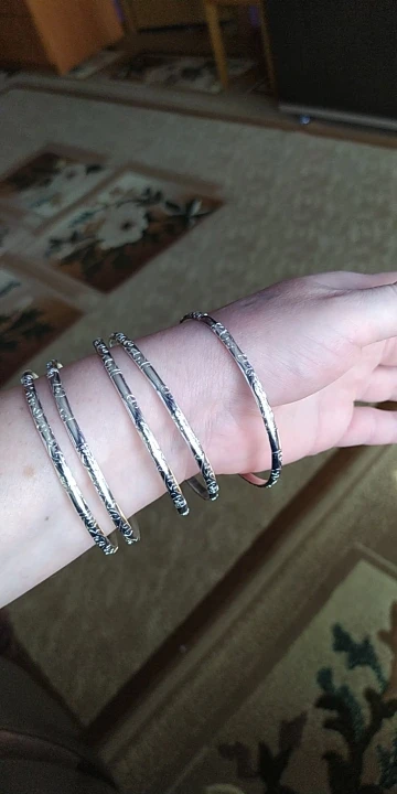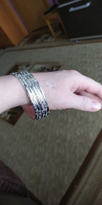 Браслеты красивые, не поцарапана, скреплены крепко. На большую руку. Подходит на размер 20 - 21.