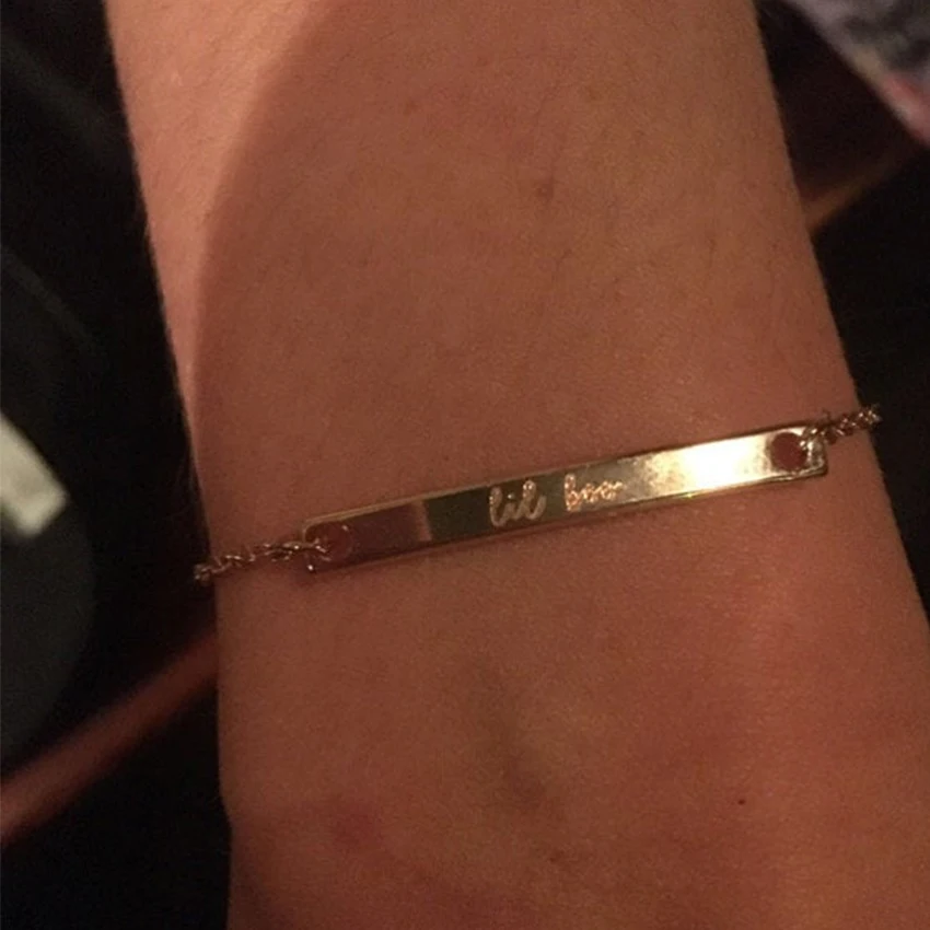 Браслет с именной табличкой золотого цвета, персонализированные бра...