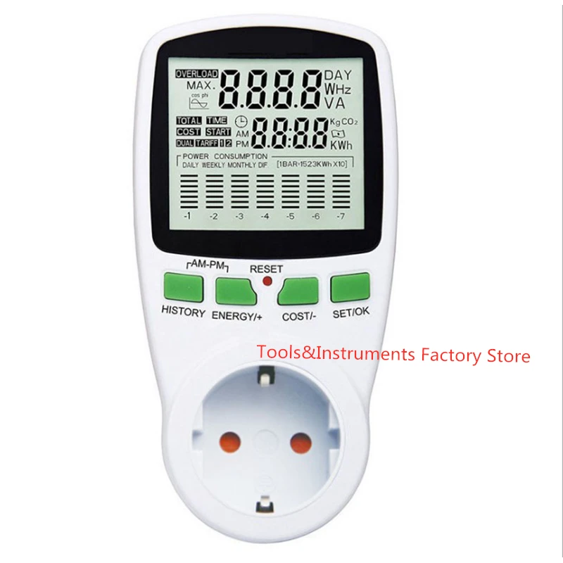 Цифровой ваттметр, измеритель мощности, с ЖК дисплеем, с европейской вилкой