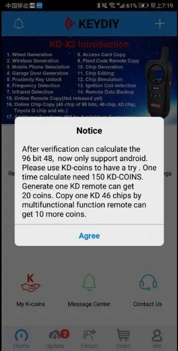 Теперь выпущен клон keydiy kd-x2 ID48, его приложение проверено, работает нормально как на Android, так и на IOS, и чтобы сделать клон ID48 бесплатно, сначала нужно иметь достаточное количество жетонов или kd-монет.