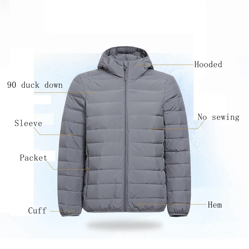 Сверхлегкий пуховик из матовой ткани, Мужская зимняя пуховая куртка с капюшоном, ветровка, Мужская Легкая портативная куртка