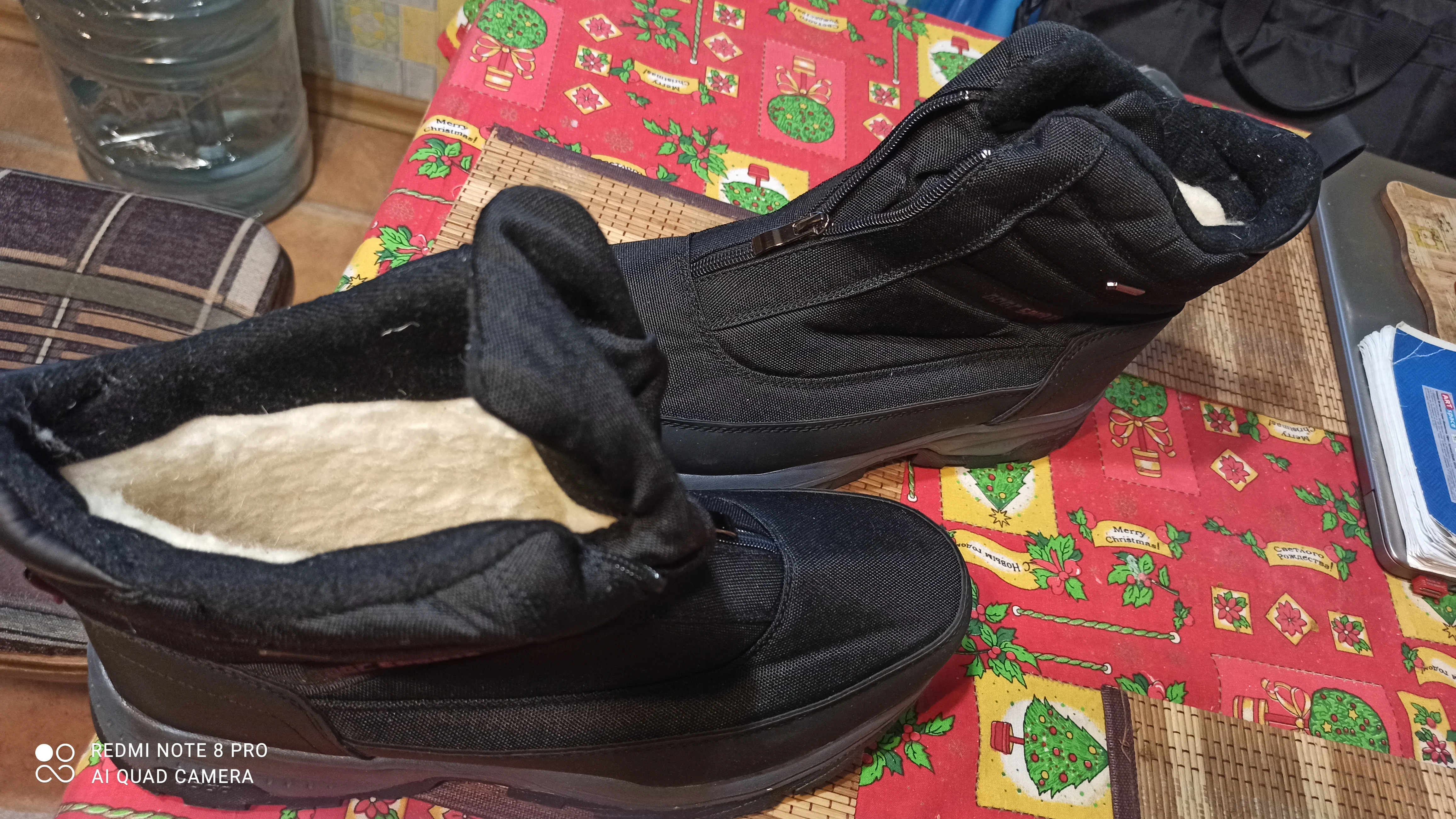 На вид и ощупь - сделаны качественно, мех внутри толстый. Размер соответствует российскому, на 44 брал 44 - как раз, полнота стопы нормальная. Сами ботинки лёгкие, в носке пока не проверял, но думаю, будет комфортно и тепло. Забирал на почте, упакованы в почтовый пакет, коробку, и простой пакет.