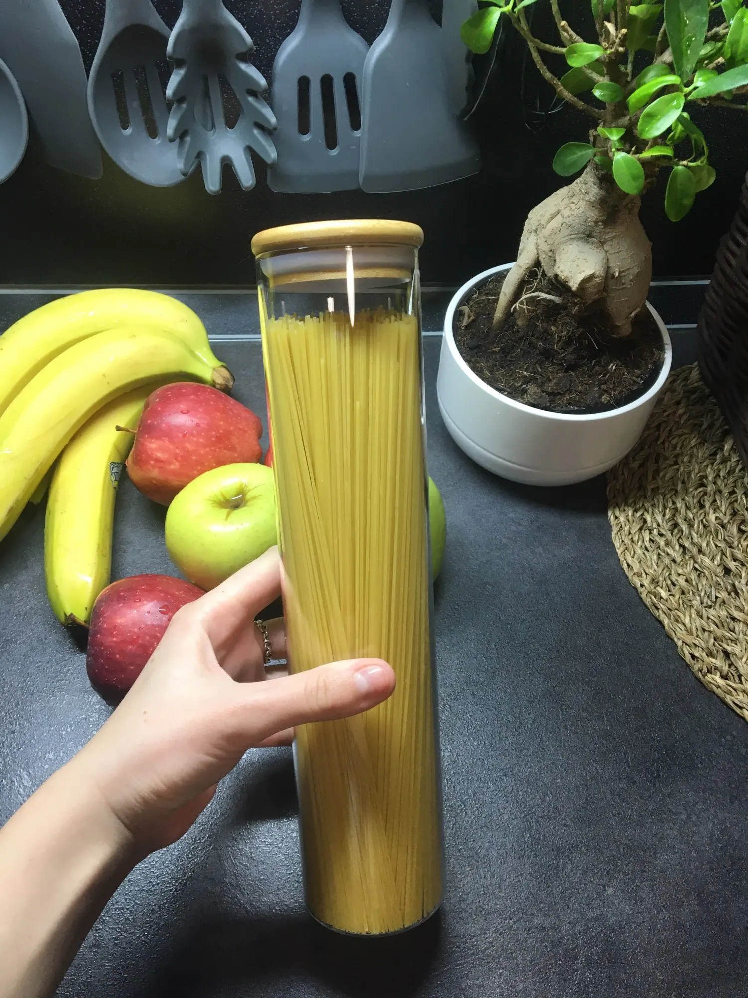 Банка супер, очень довольна покупкой. Но считаю, что цена очень высокая. Разоришься каждую банку брать по 700р и выше. Стекло тонкое, боишься теперь как бы не разбить. Н намного удобнее хранить так крупы, чем в упаковке. Пришла целая, Хорошо упакована.