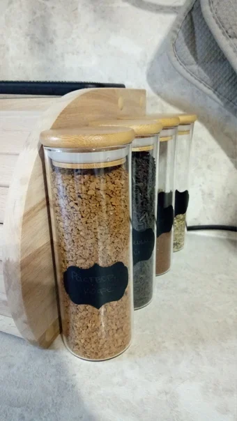 Баночки чудесные, заказала уже второй раз у продавца. Стекло, бамбуковая крышка с резиновой вставкой. Не пахнут, упакованы хорошо - обе посылки доехали полностью целыми. В упаковку продавец вложил наклейки для банок и промокод на скидку)