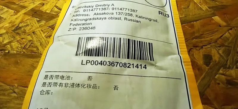 Страна: RU Ships From: Russian Federation Доставка: CN_OVERSEA_GD 11.01.2021