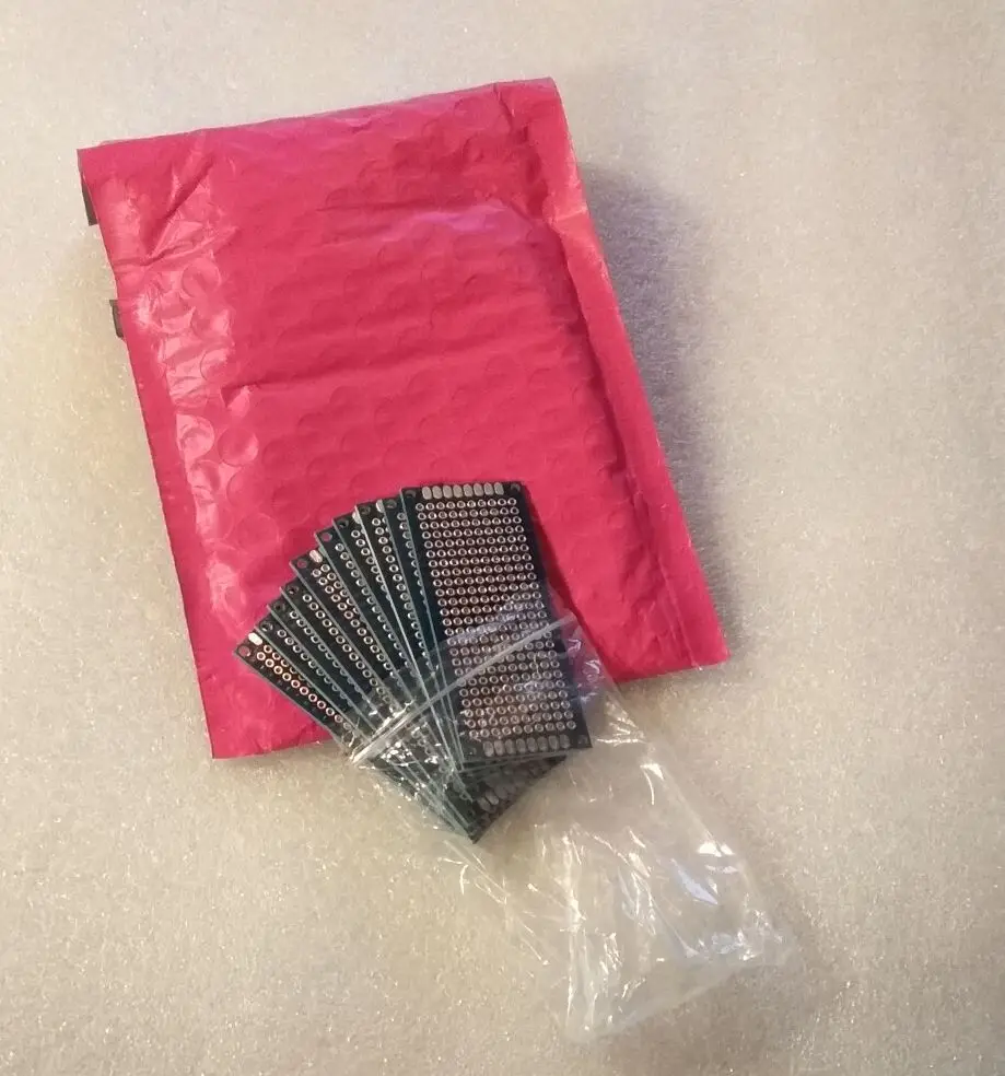 От заказа до получения - 23 дня. Упаковка - почтовый пакет с пузырчатой пленкой. Описанию соответствует. Трек отслеживался. Платы были в пакете, но почему то имели клеевые следы от скотча. Отмывать их - отдельное "удовольствие".