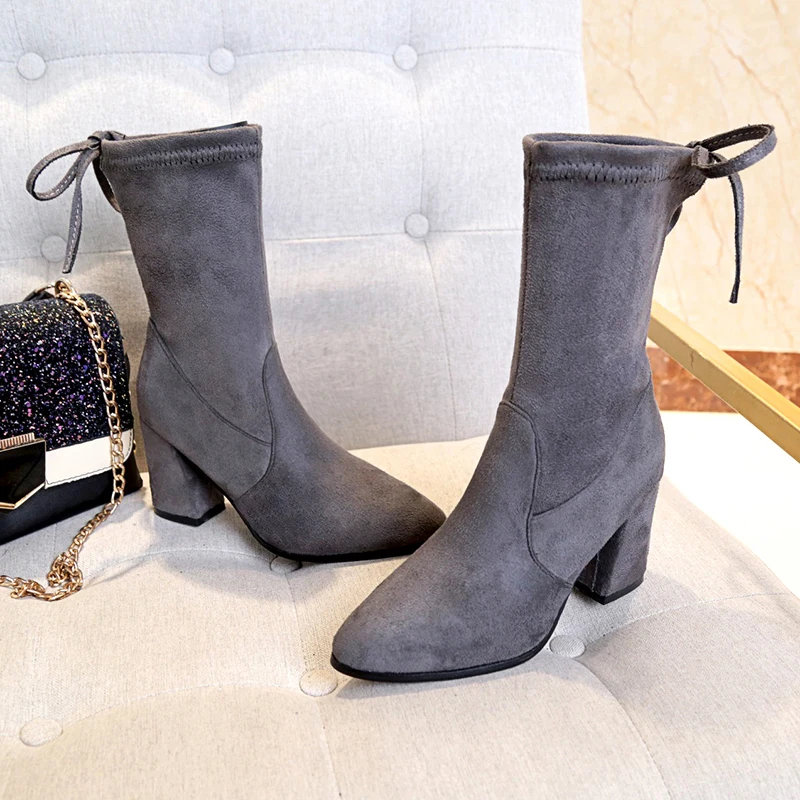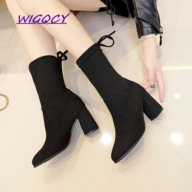 Женские ботинки; Эластичные ботинки из флока в британском стиле; Повседневные модные ботинки из плюша в европейском и американском стиле