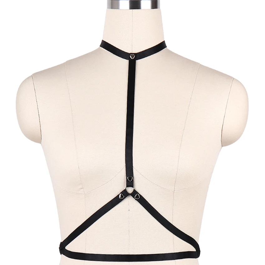 Простая сетка на шею бюстгальтер портупея для тела Kawaii сердце и застежкой в стиле панк, сексуальное нижнее белье, пастельный, готический Женские корсет для связывания рейв ремня через одно плечо