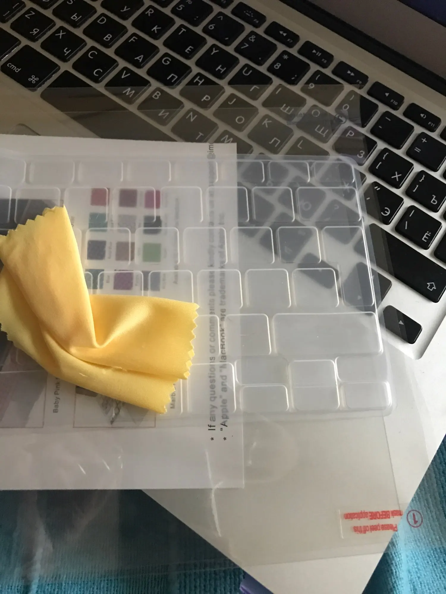 Чехол подходит для ноутбука лучше, чем тот, который мы купили в местном магазине Apple store (который было трудно положить на ноутбук и начать разбивать после всего четырех недель использования). Нам понравилось, что у этого есть чехол для клавиатуры и чехол для экрана. Единственное, что вы должны полировать Чехол хорошо, прежде чем разместить его, так как на нем есть некоторые пятна.