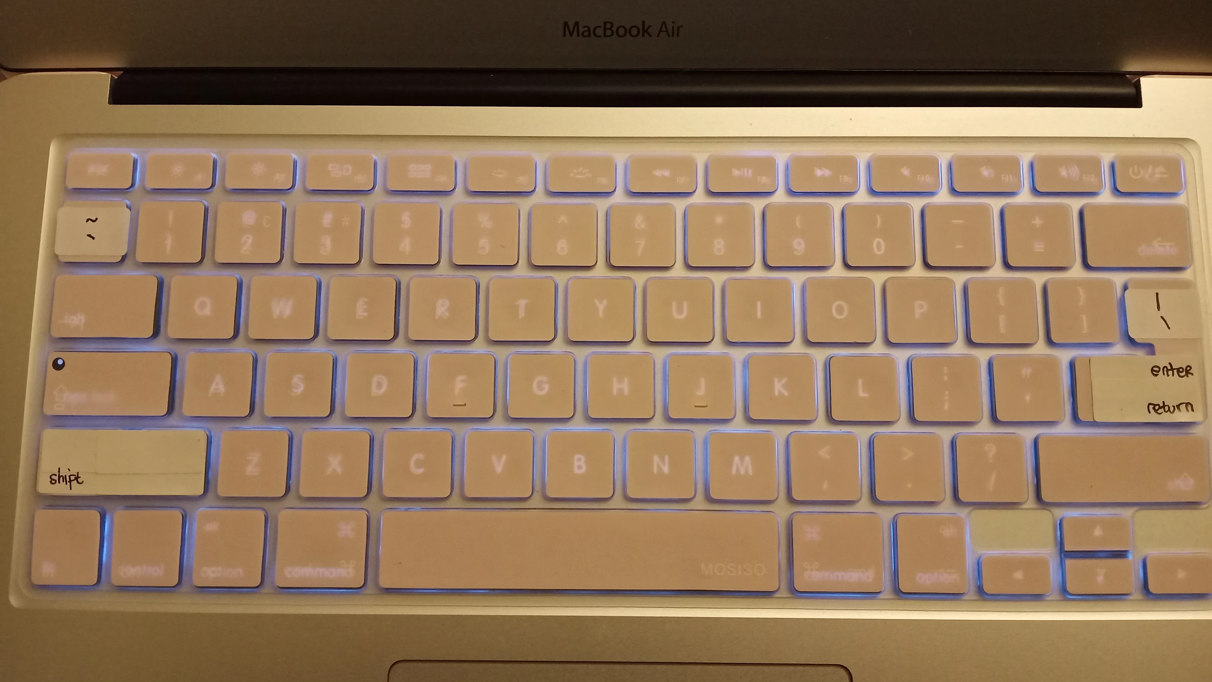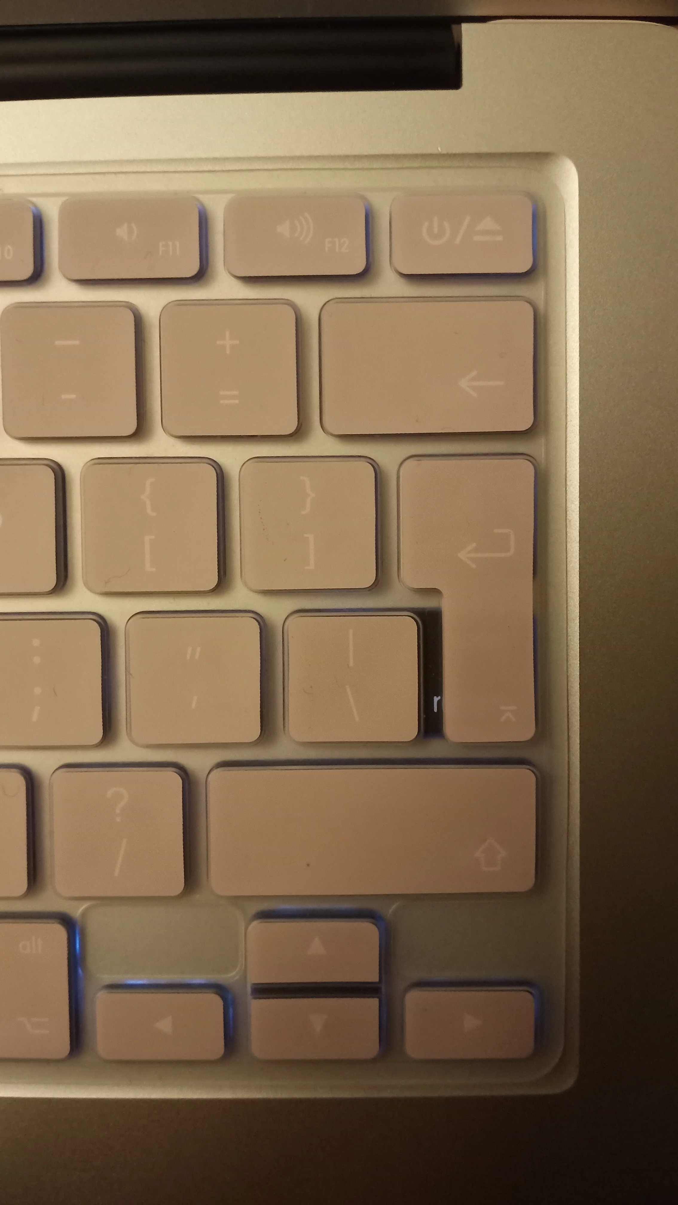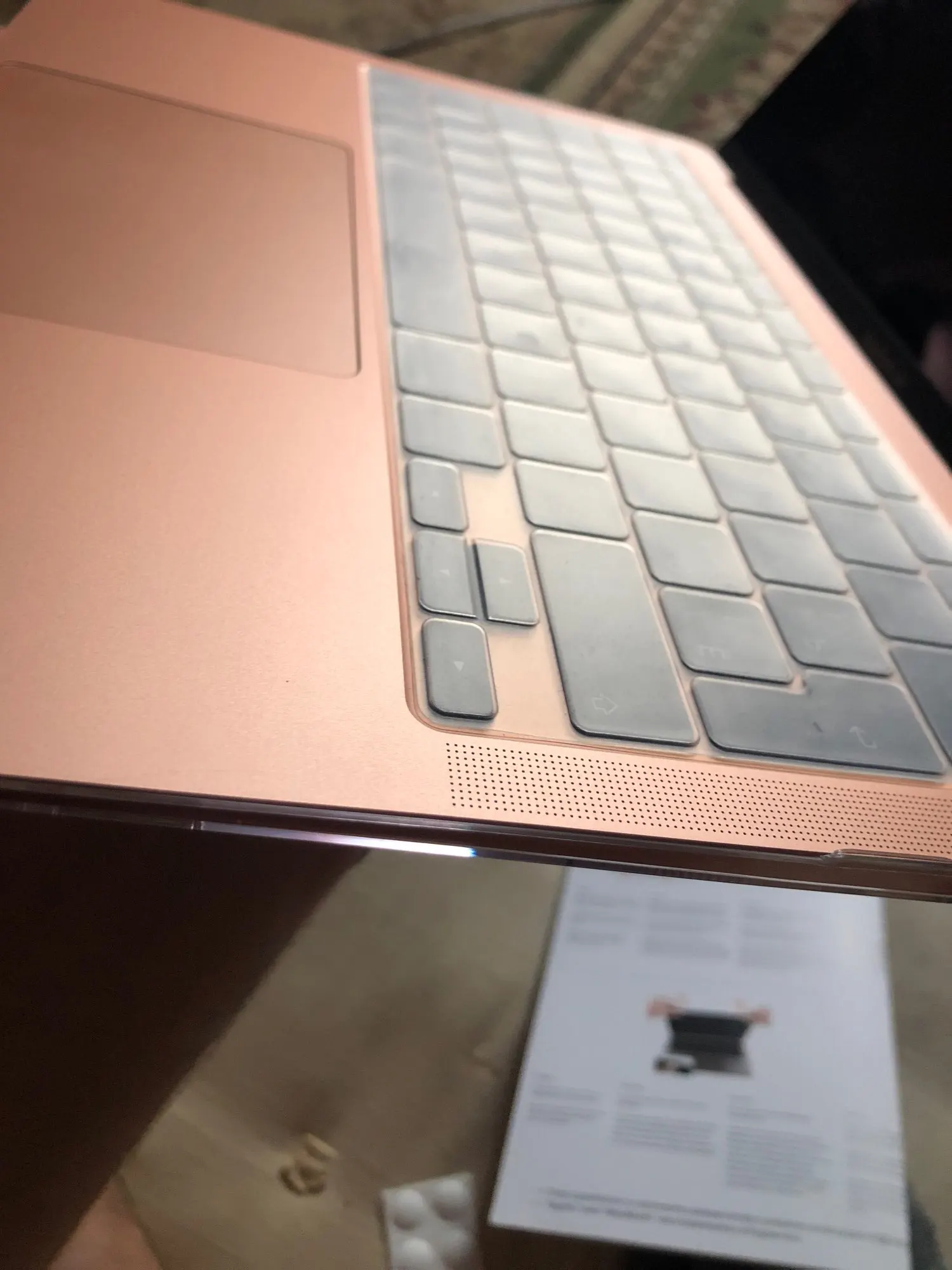 Хорошо упакован, чехол хорошо подошел. FYI, полностью покрывает логотип apple. Я запросил розовую крышку клавиатуры, но получил четкую, но небольшую проблему.