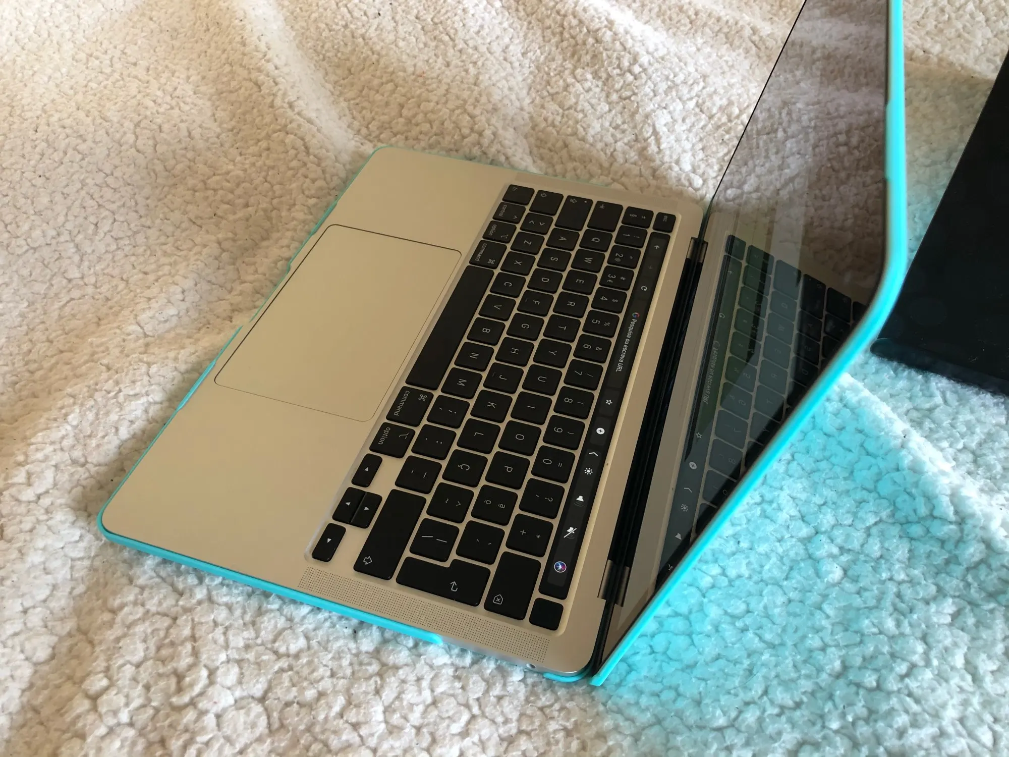 Он только что прибыл, и я влюблен в цвет! Совместим с последней версией Macbook air, клавиатура такая же, просто небольшая проблема, с которой она не закрывается полностью по бокам, но я не знаю, как она выходит. В целом очень доволен продуктом.