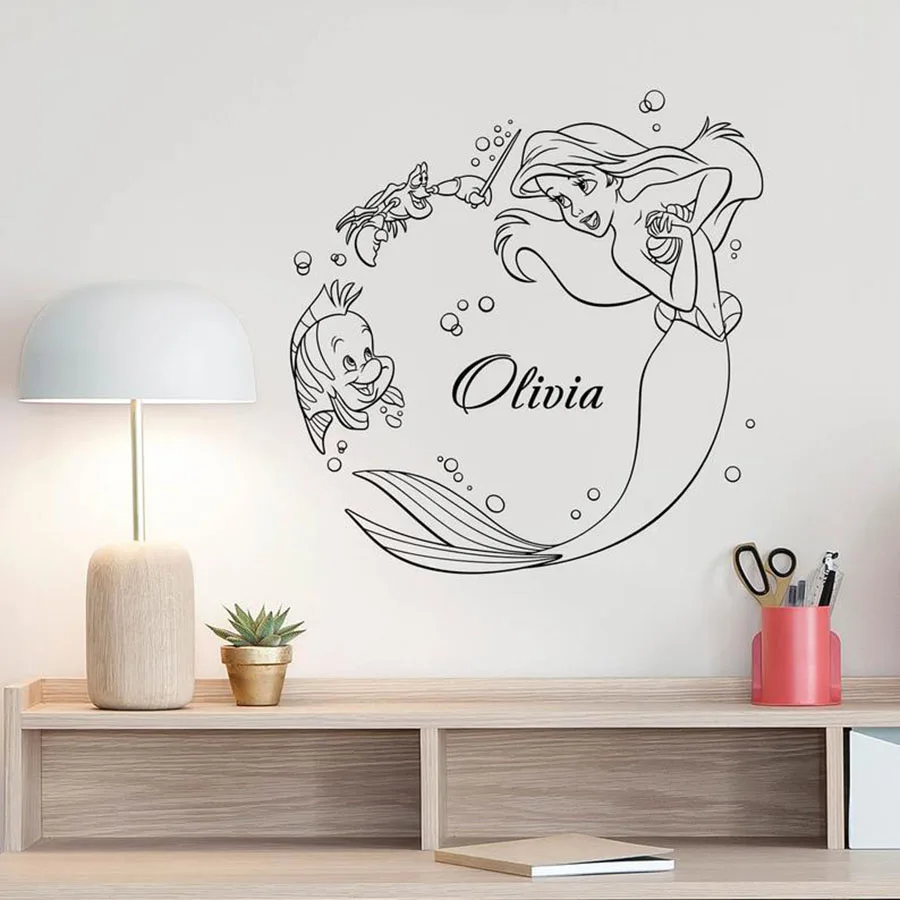 Маленькая Русалочка Наклейка на стену персонализированное имя постер с малышом пользовательское имя детская виниловая наклейка детский подарок игровая комната Искусство Декор S510