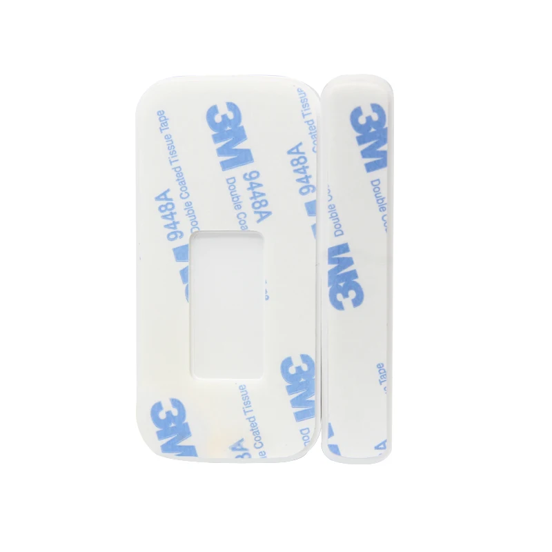 Оторвите заднюю пленку двойной ленты, закрепите подвесную доску детектора и магнитную часть в подходящем положении. (Как на картинке, детектор должен быть установлен на дверной раме или фиксированном положении. Магнитная часть может быть установлена на подвижной части)