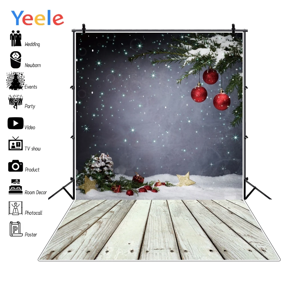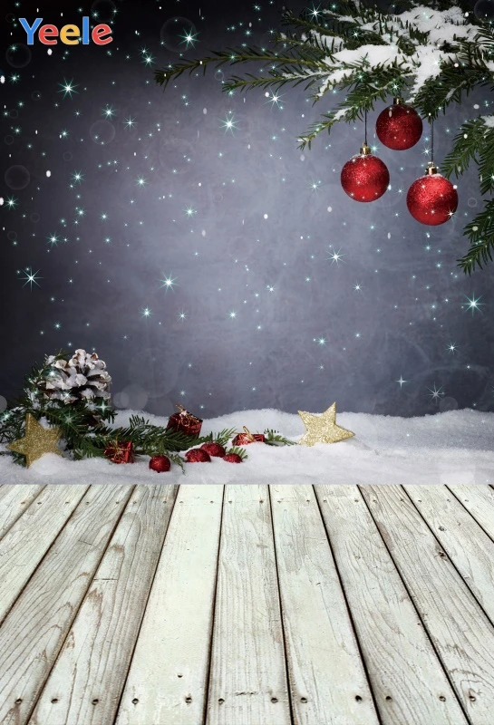 Yeele фон для фотосъемки новый год снег зима деревянный пол индивидуальные дети фото Рождественский шар фоны для фотостудии