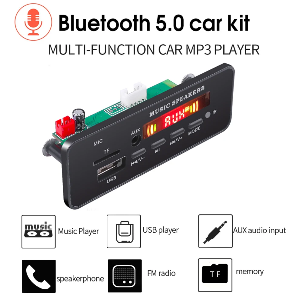 USB AUX Bluetooth 5,0 гарнитура 7 В-12 в WMA WAV MP3 декорирующий Модуль платы слот для TF-карты 3,5 мм линия в FM радио аудио адаптер