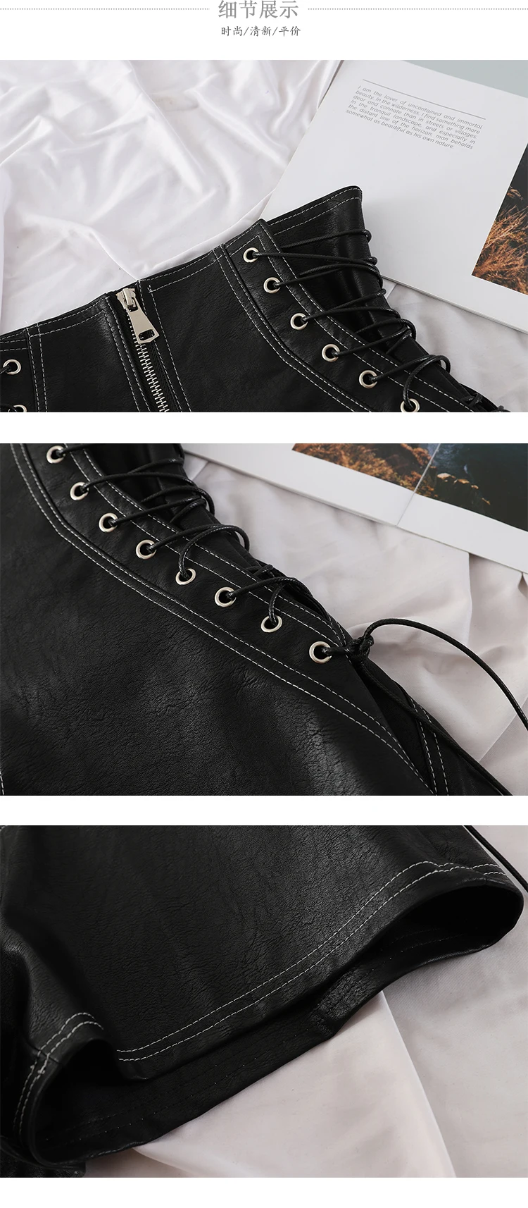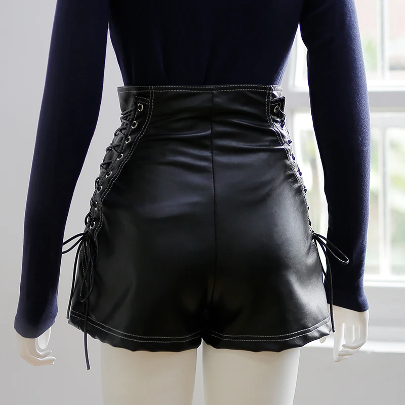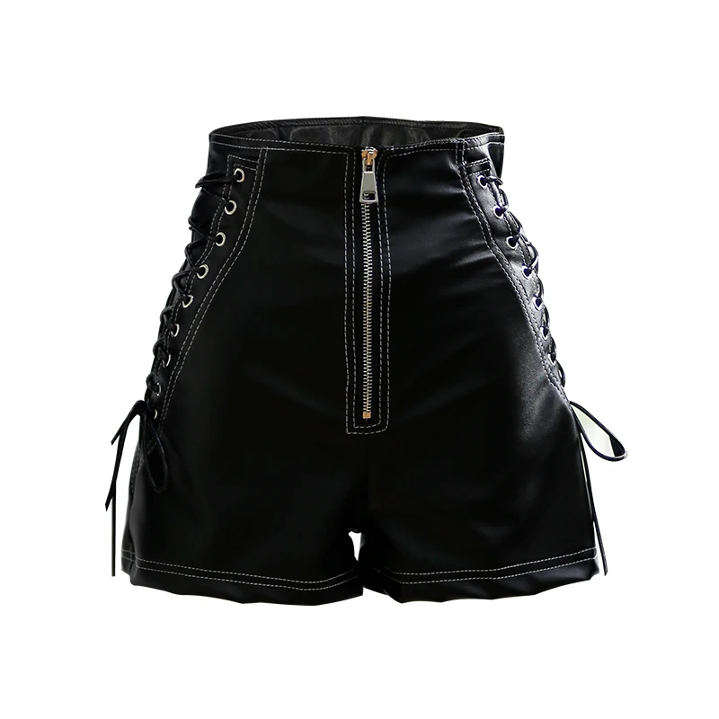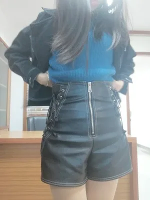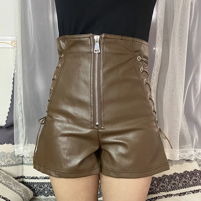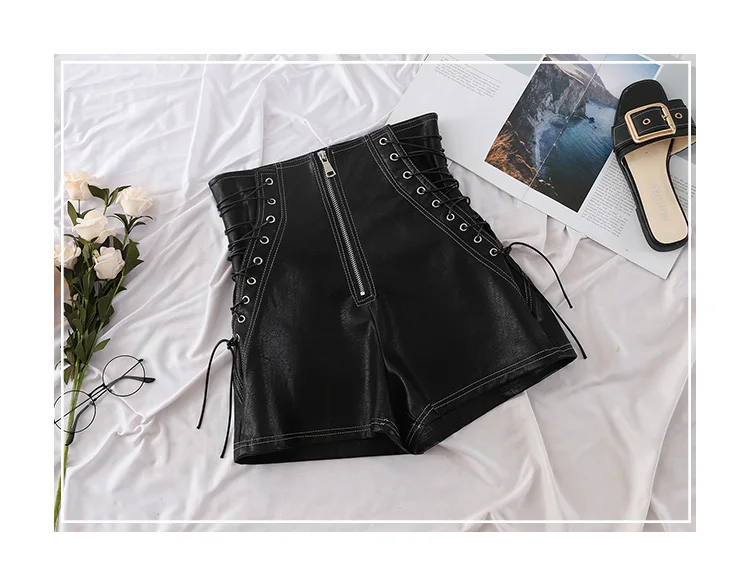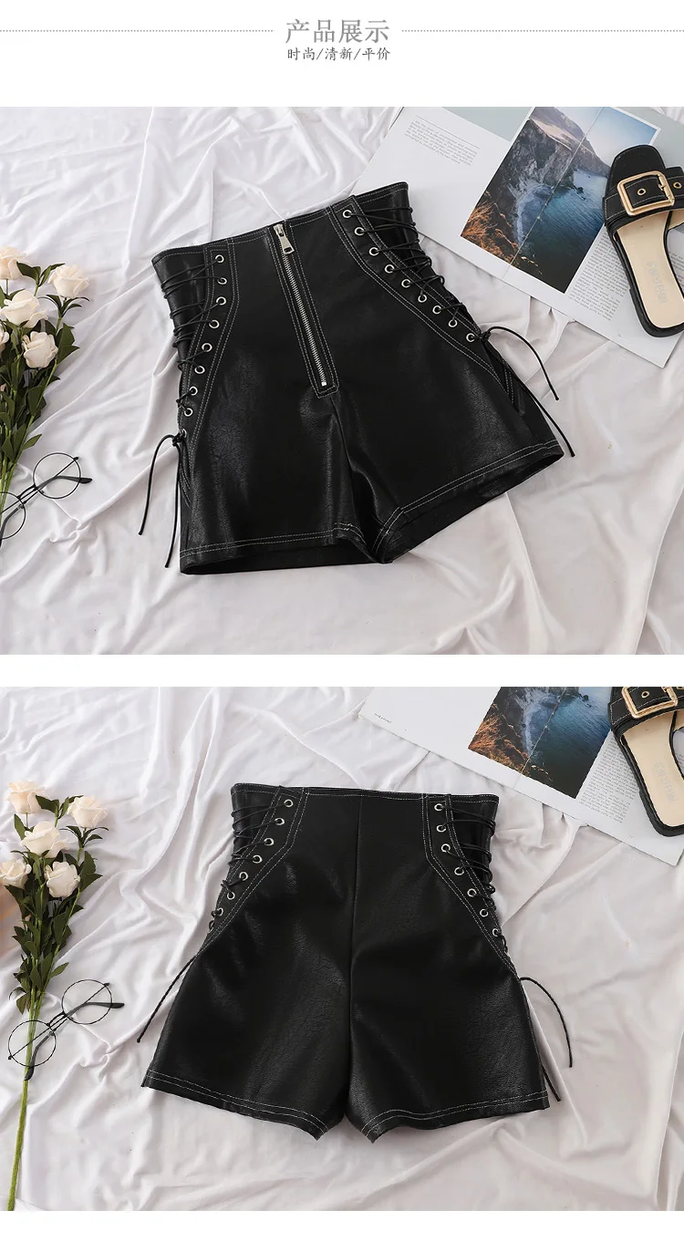 Шорты женские из искусственной кожи, на молнии, черные, Осенние, 2020