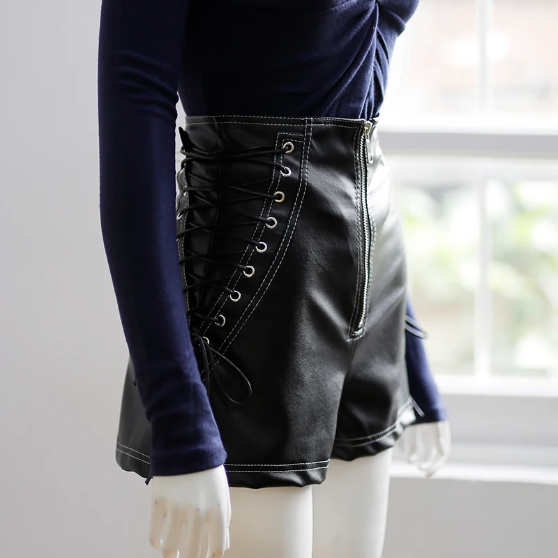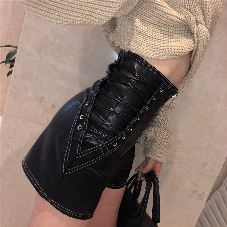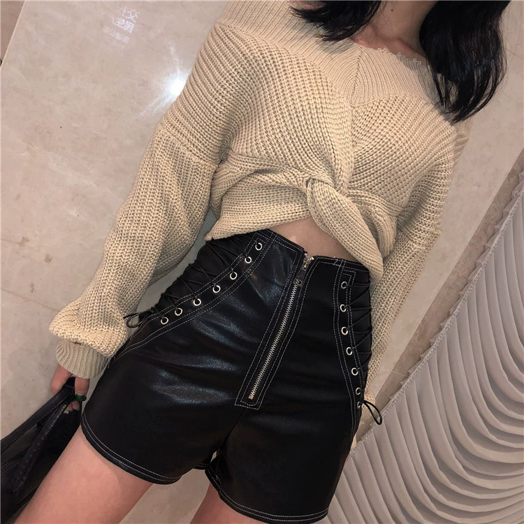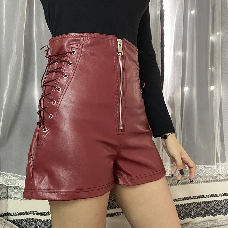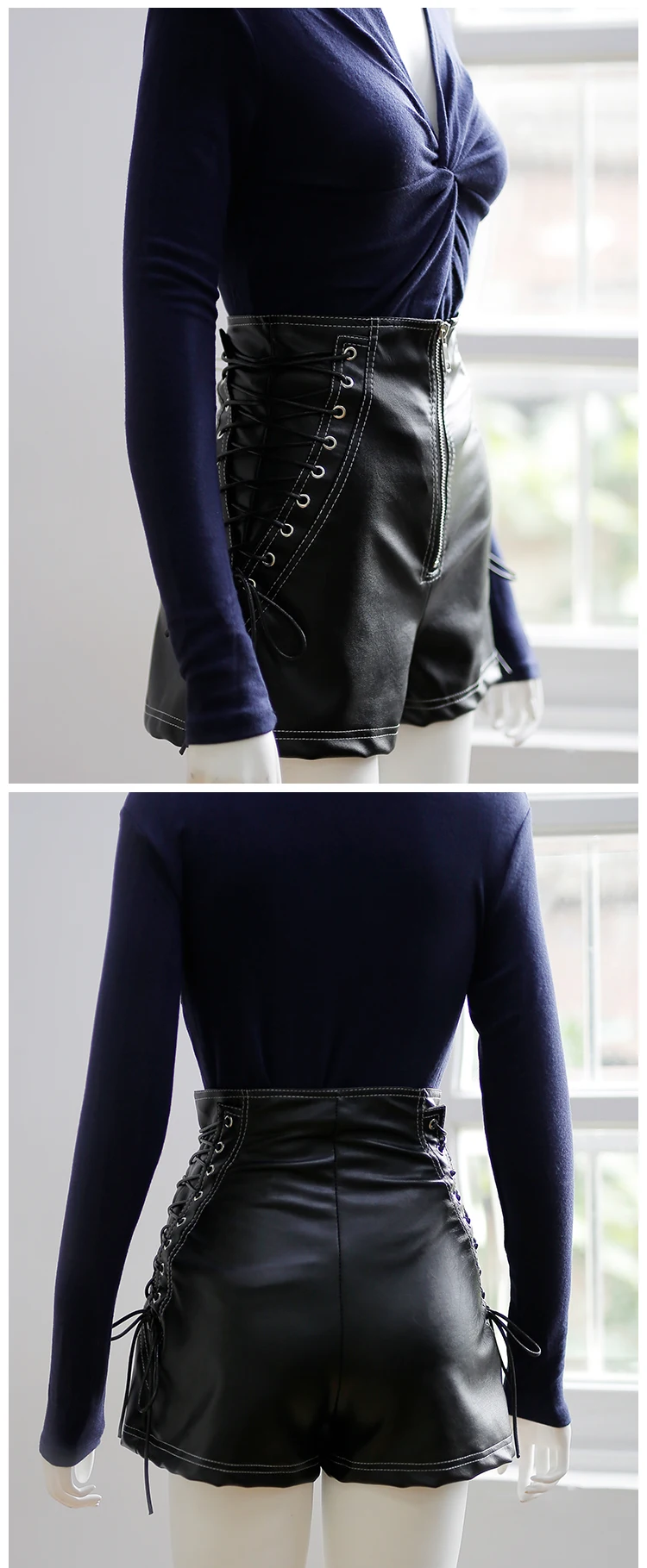 Шорты женские из искусственной кожи, на молнии, черные, Осенние, 2020
