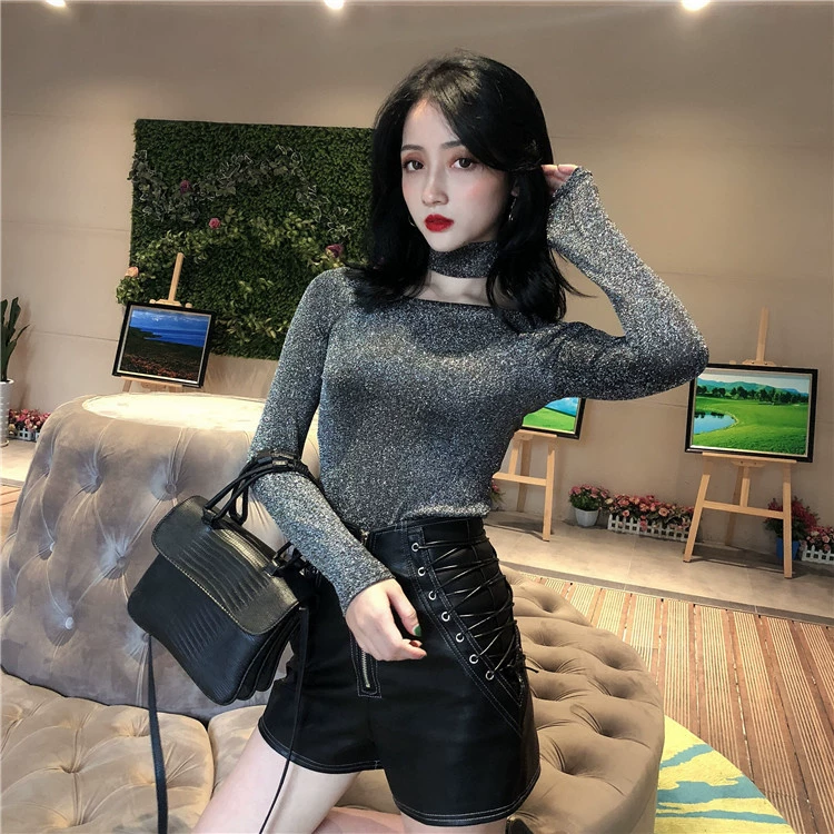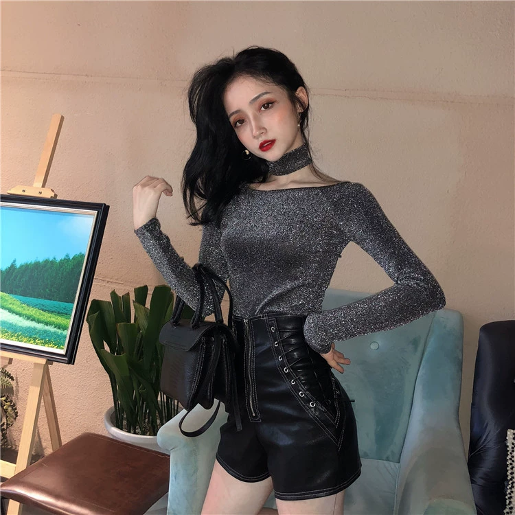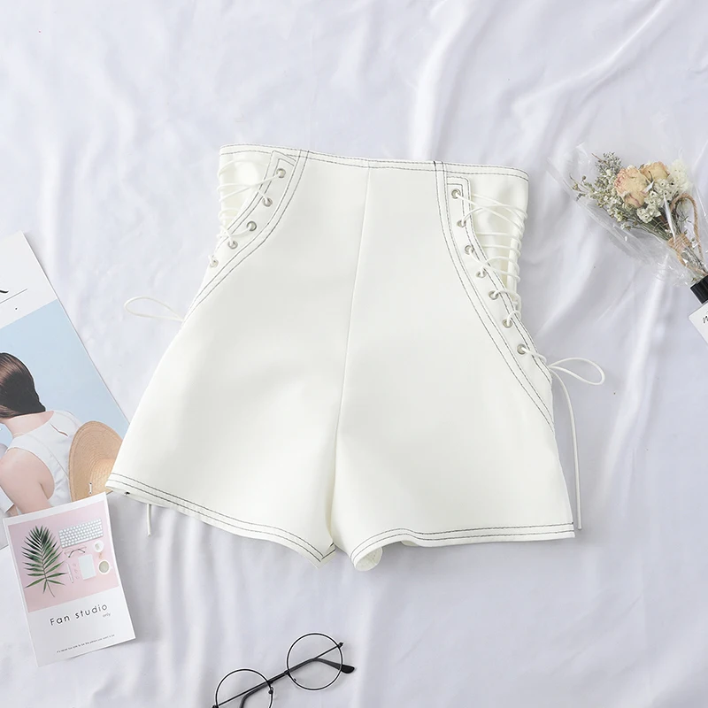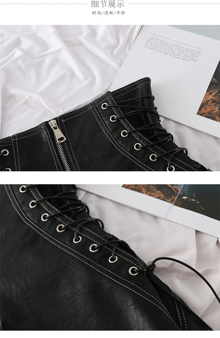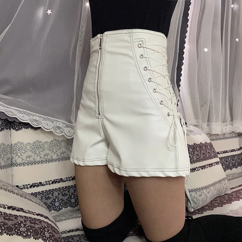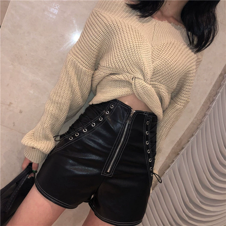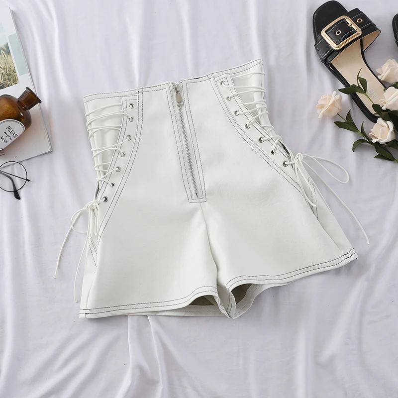 Шорты женские из искусственной кожи, на молнии, черные, Осенние, 2020